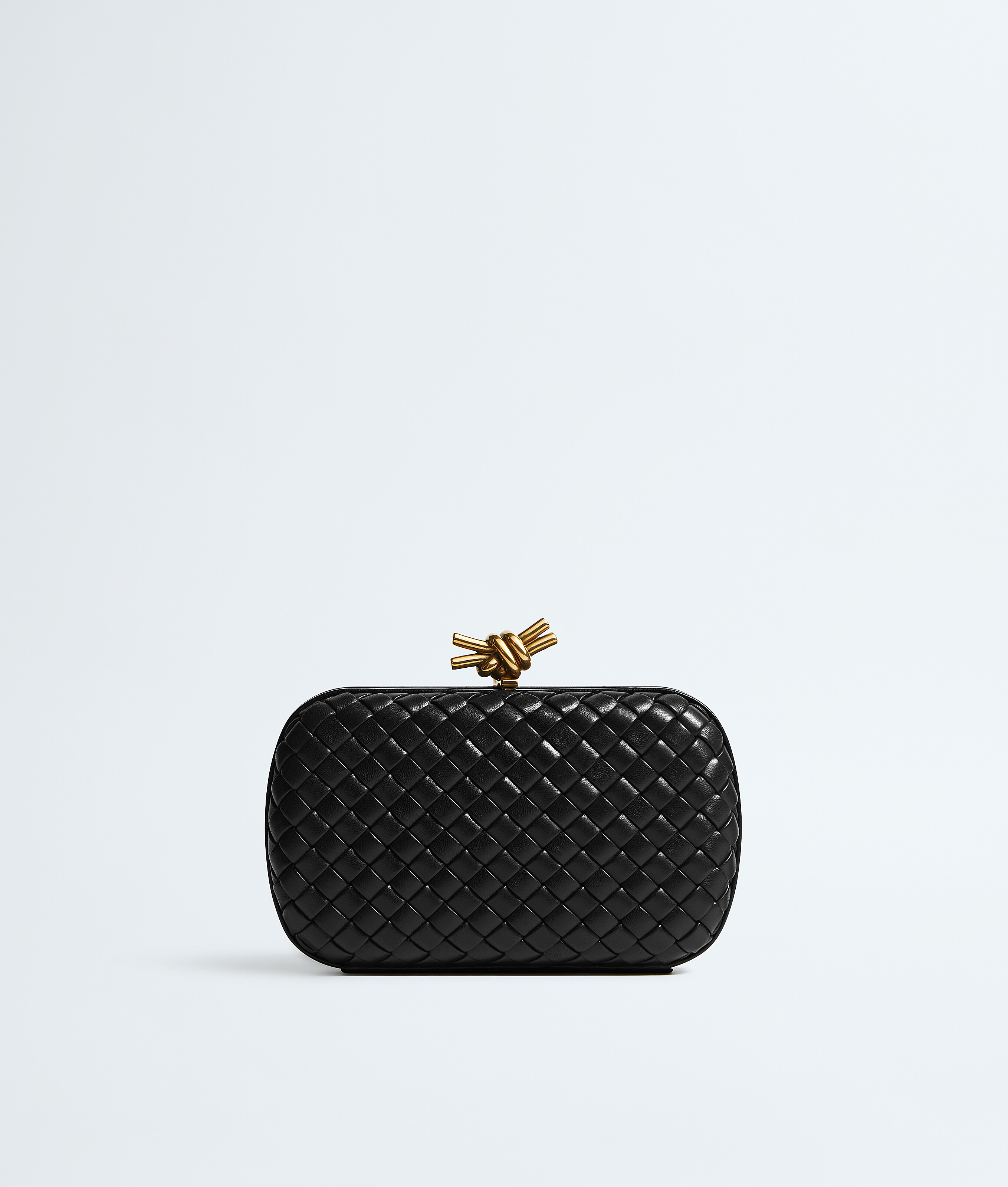Minaudière clutch in padded Intreccio leather with signature knot closure.
