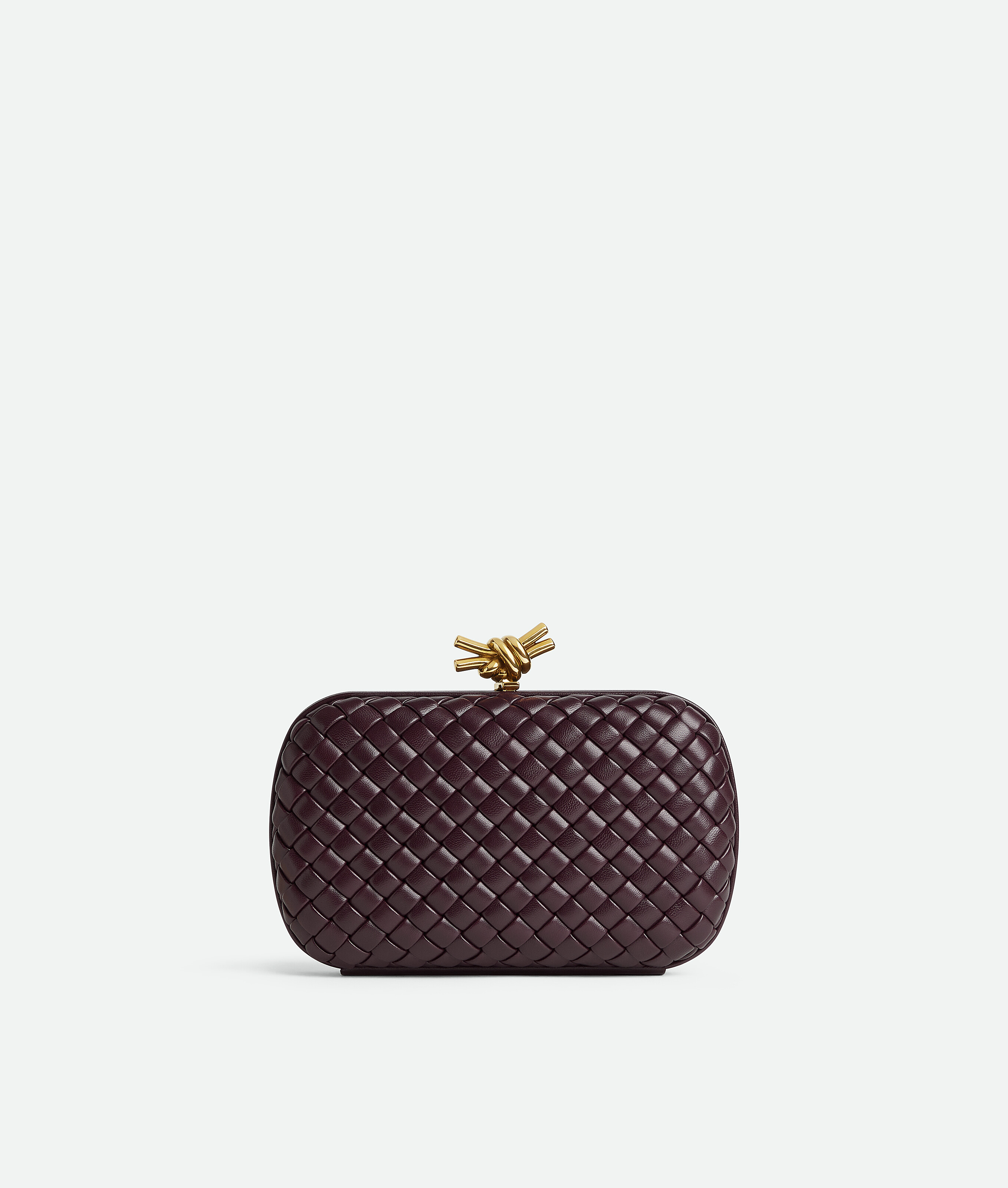 Minaudière clutch in padded Intreccio leather with signature knot closure.