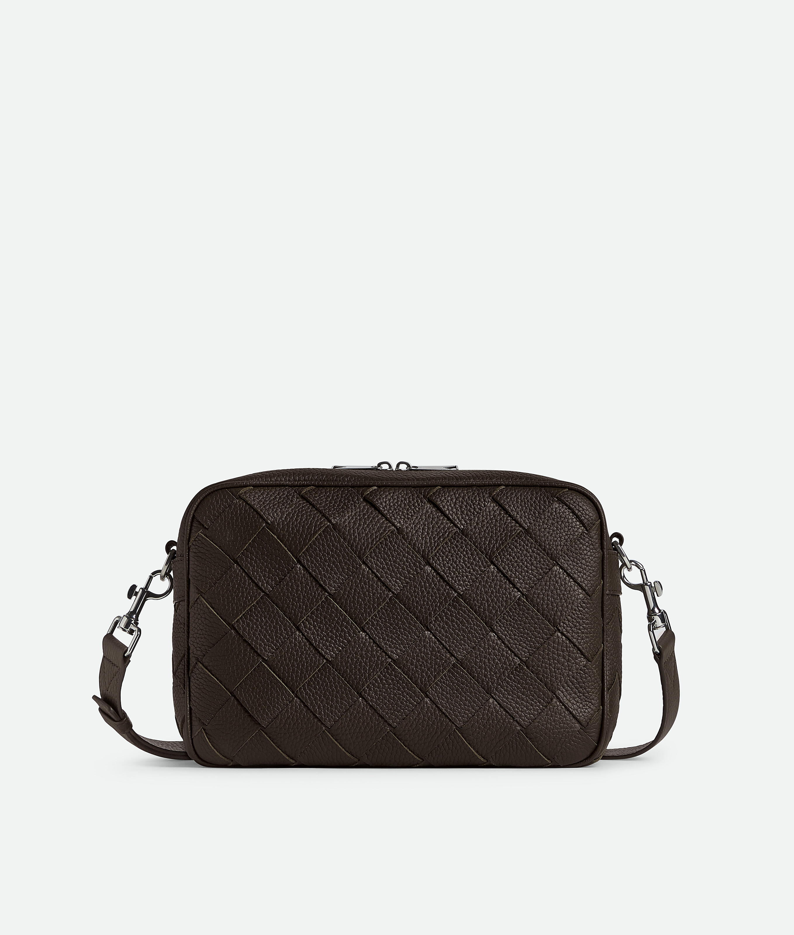 Cross-body bag in Intrecciato grained leather with detachable strap and metal D-ring.