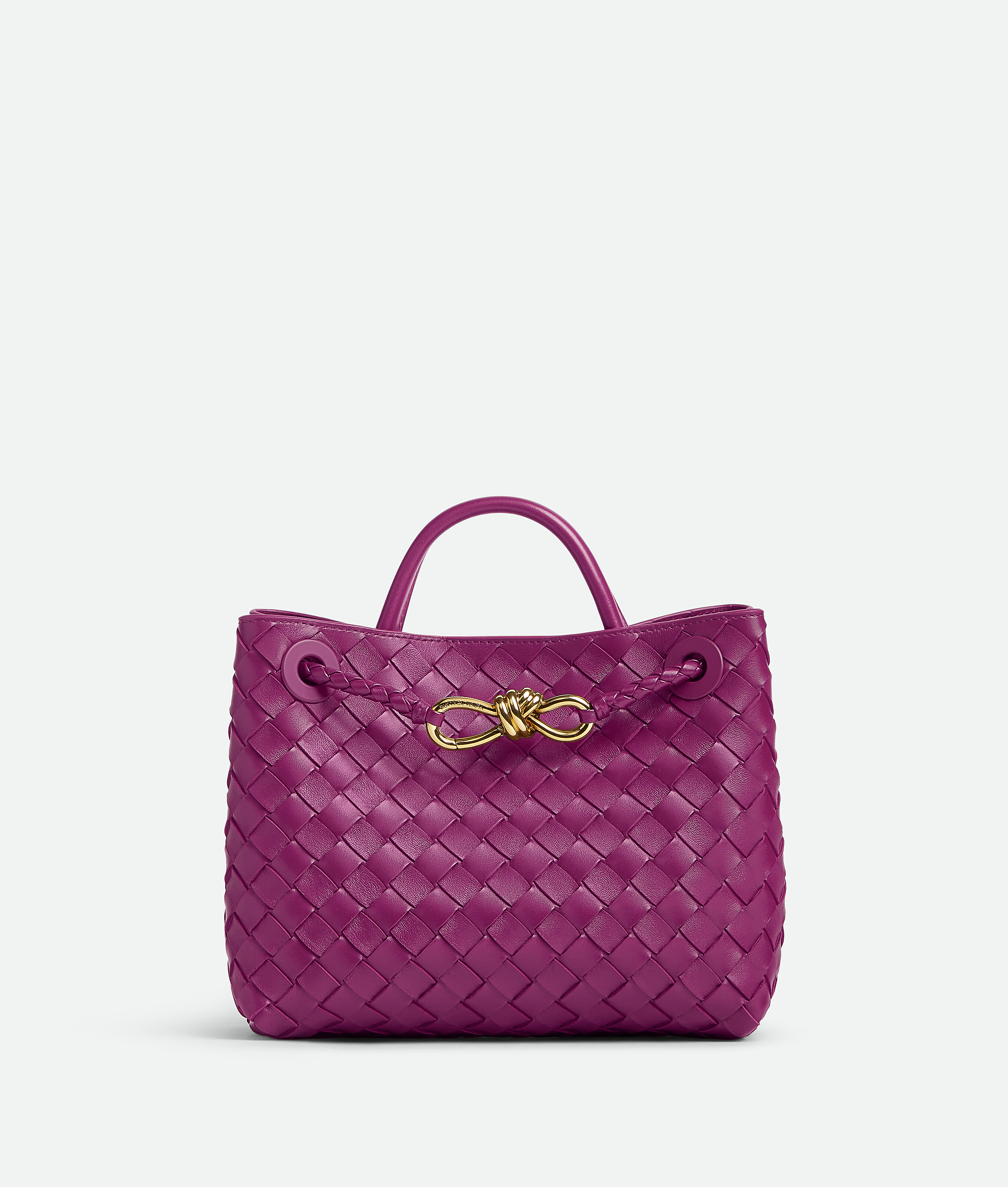 Top handle bag in Intrecciato leather with signature knot detail and sliding cross-body strap.