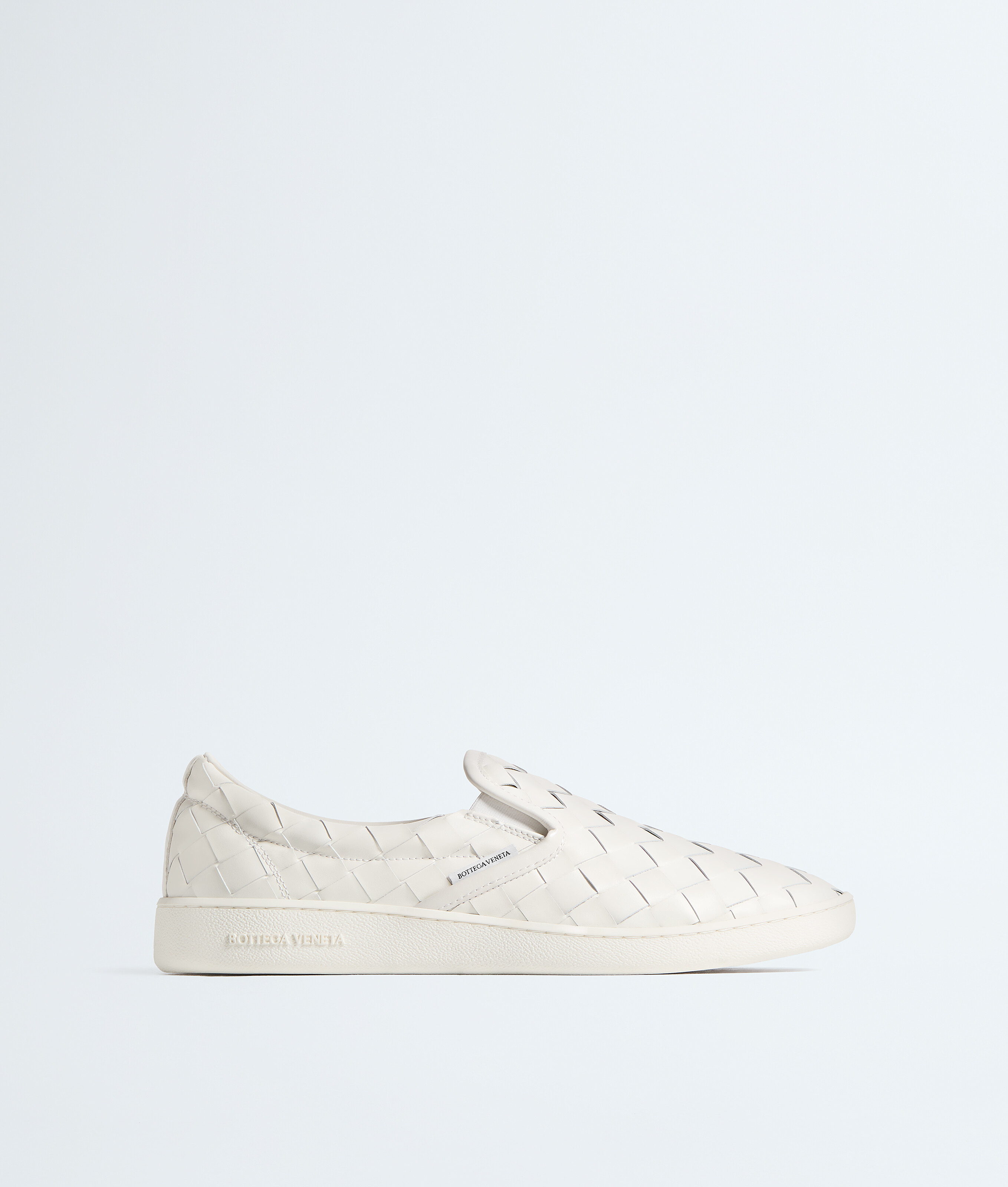Slip-on sneaker realised with all-over Intrecciato craftsmanship in soft calfskin.