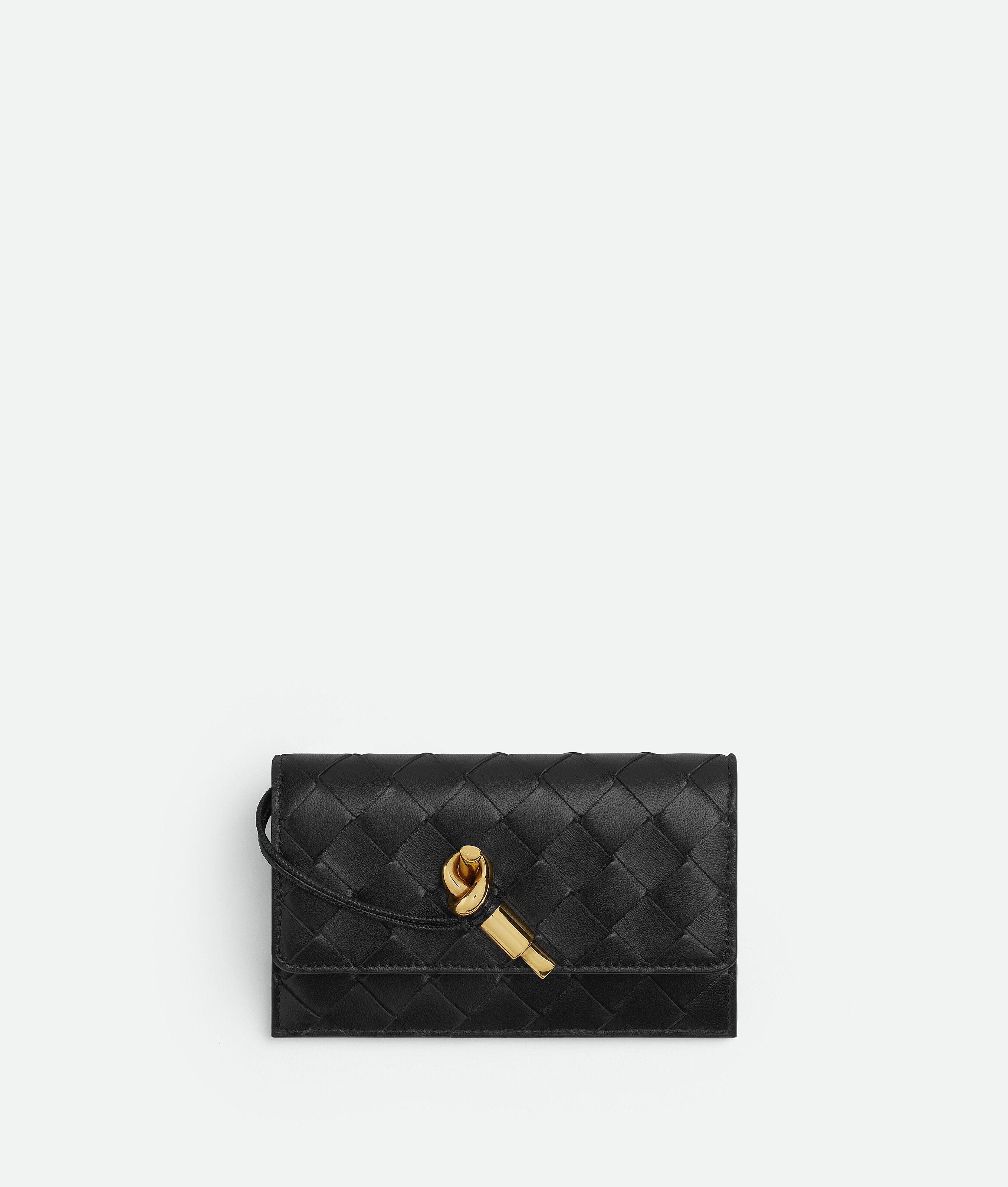 Zipped card case in Intrecciato nappa leather with signature knot detail.