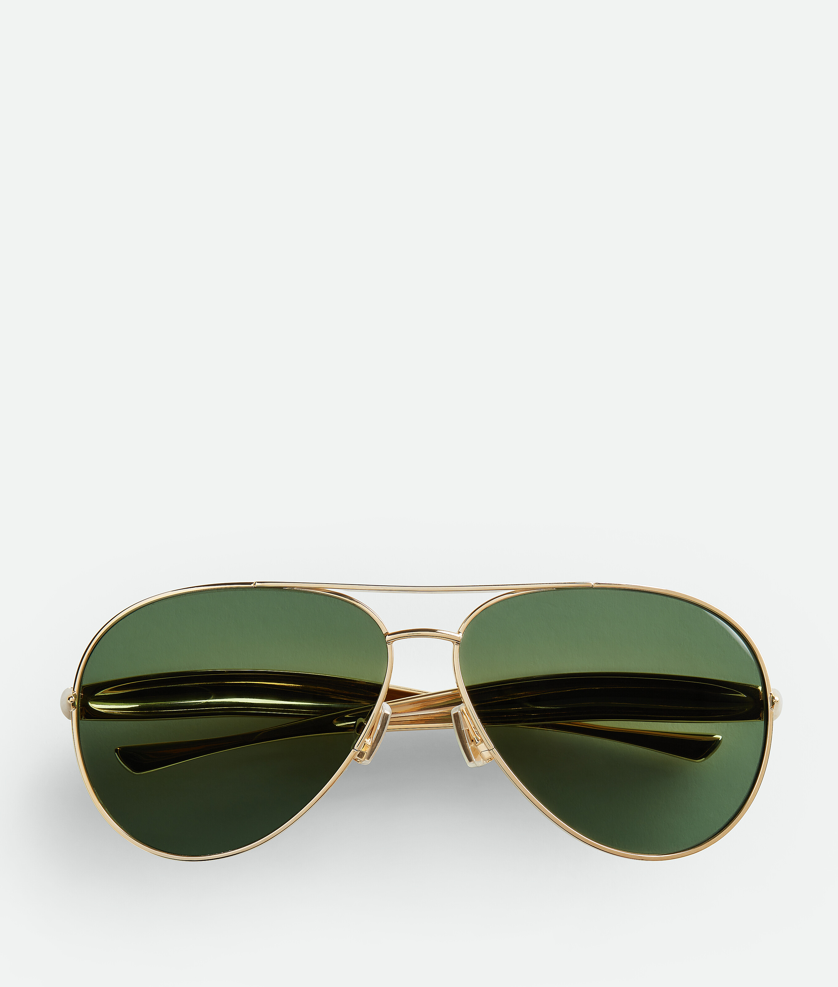 Aviator sunglasses in metal with sculptural sardine shape temples.