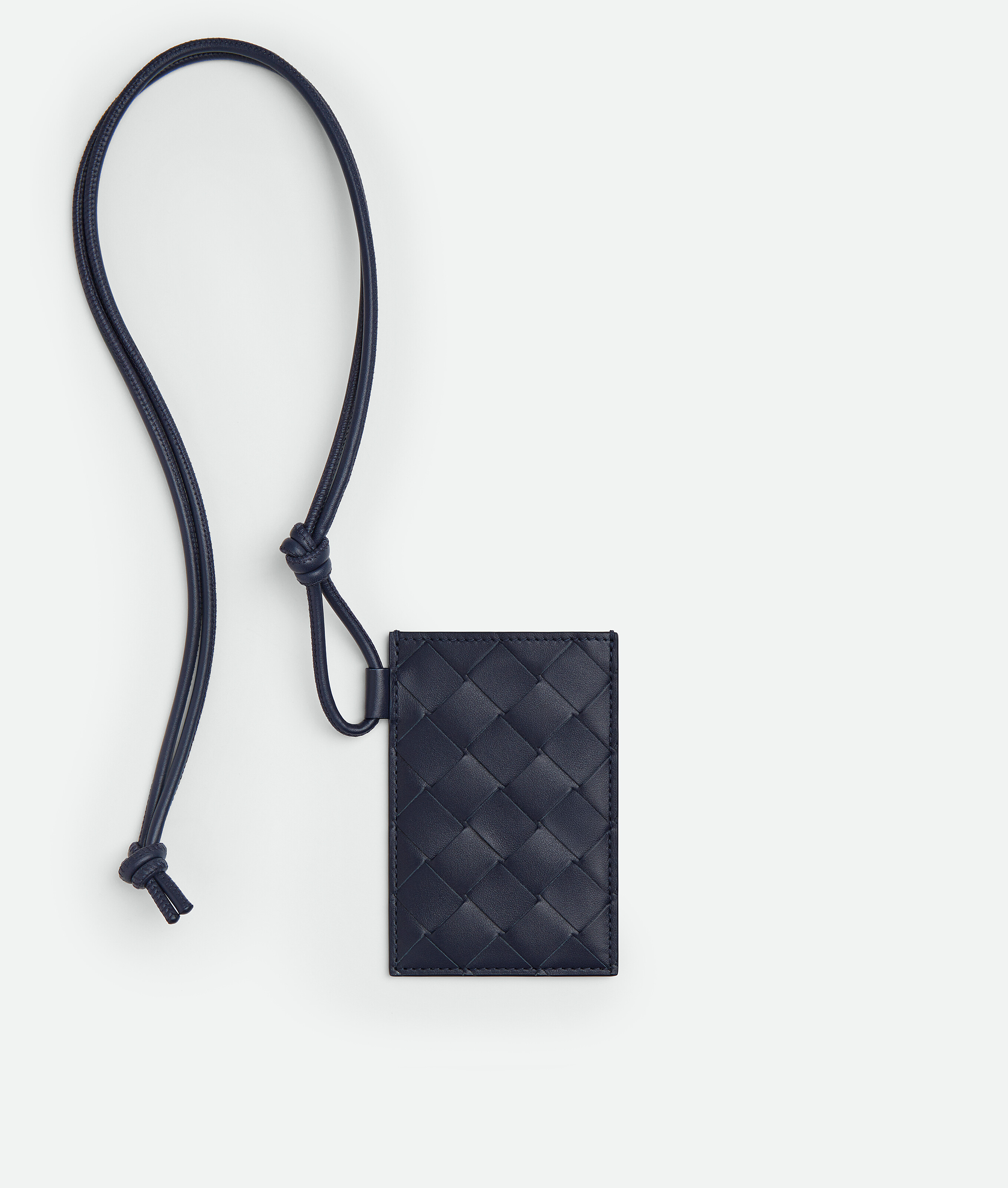 Badge holder in Intrecciato calf leather with contrasted interior.