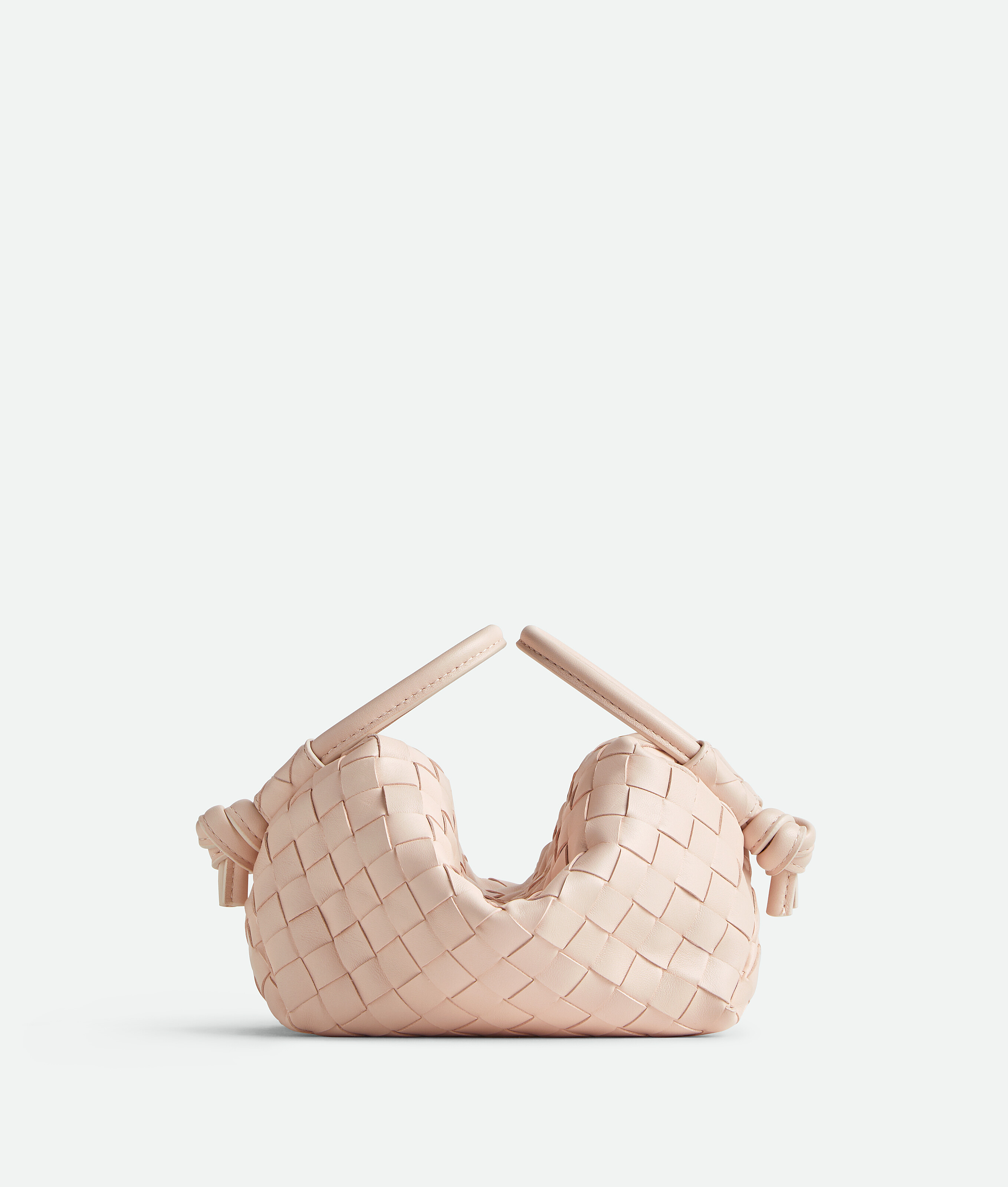 Intrecciato leather cross-body bag with double handles and detachable strap.