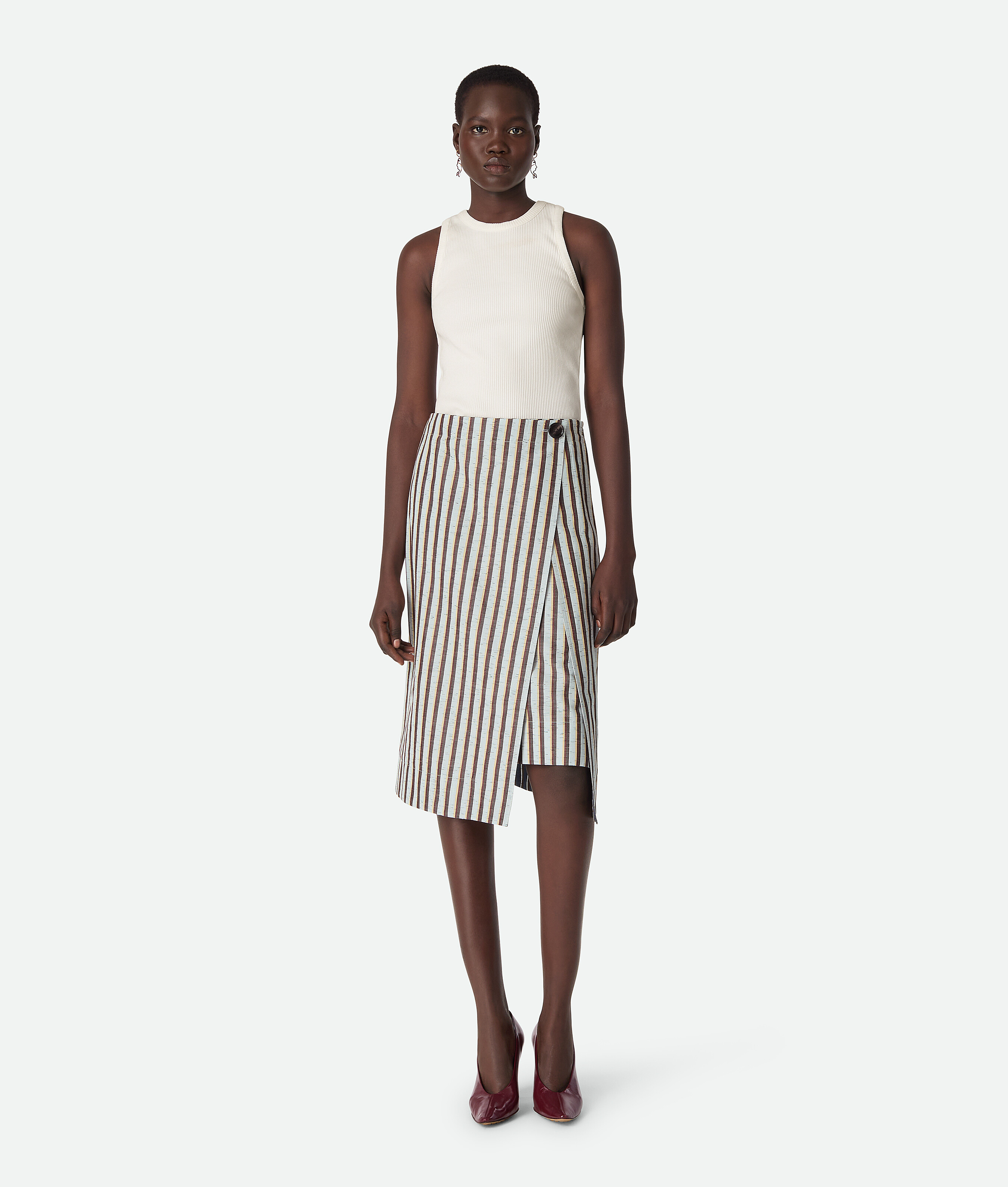 Skirt with wrapped silhouette in cotton and linen with bold striped design.