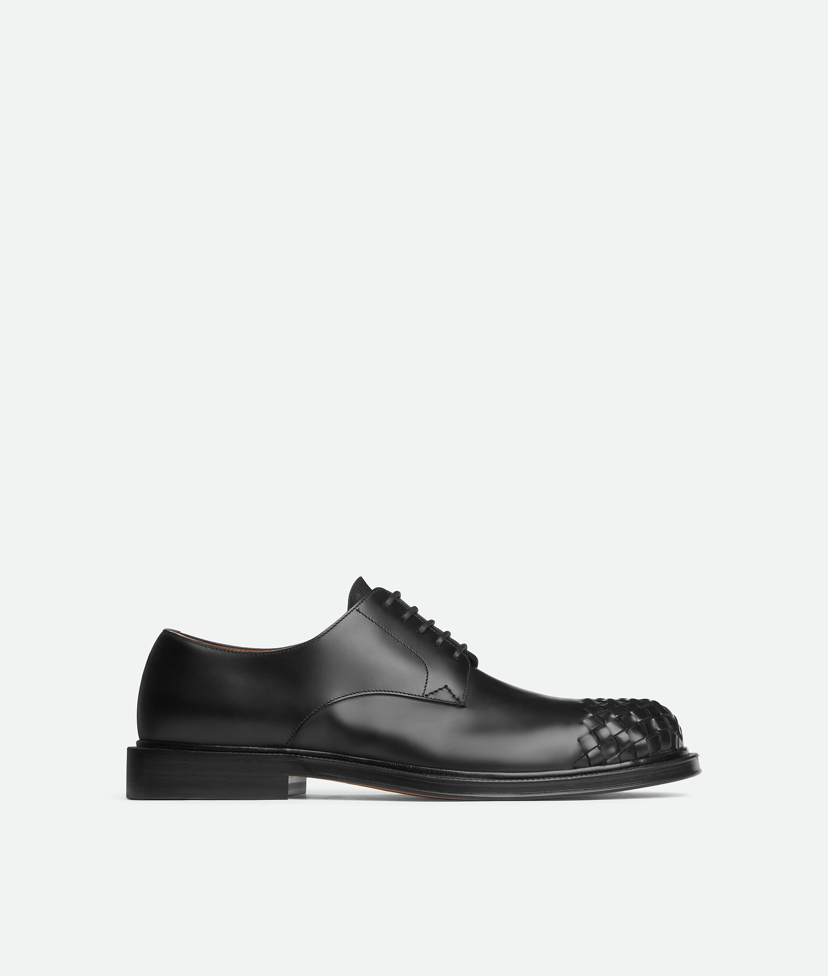 Lace-up shoe in classic calfskin leather with seamless Intrecciato craft at the toe.