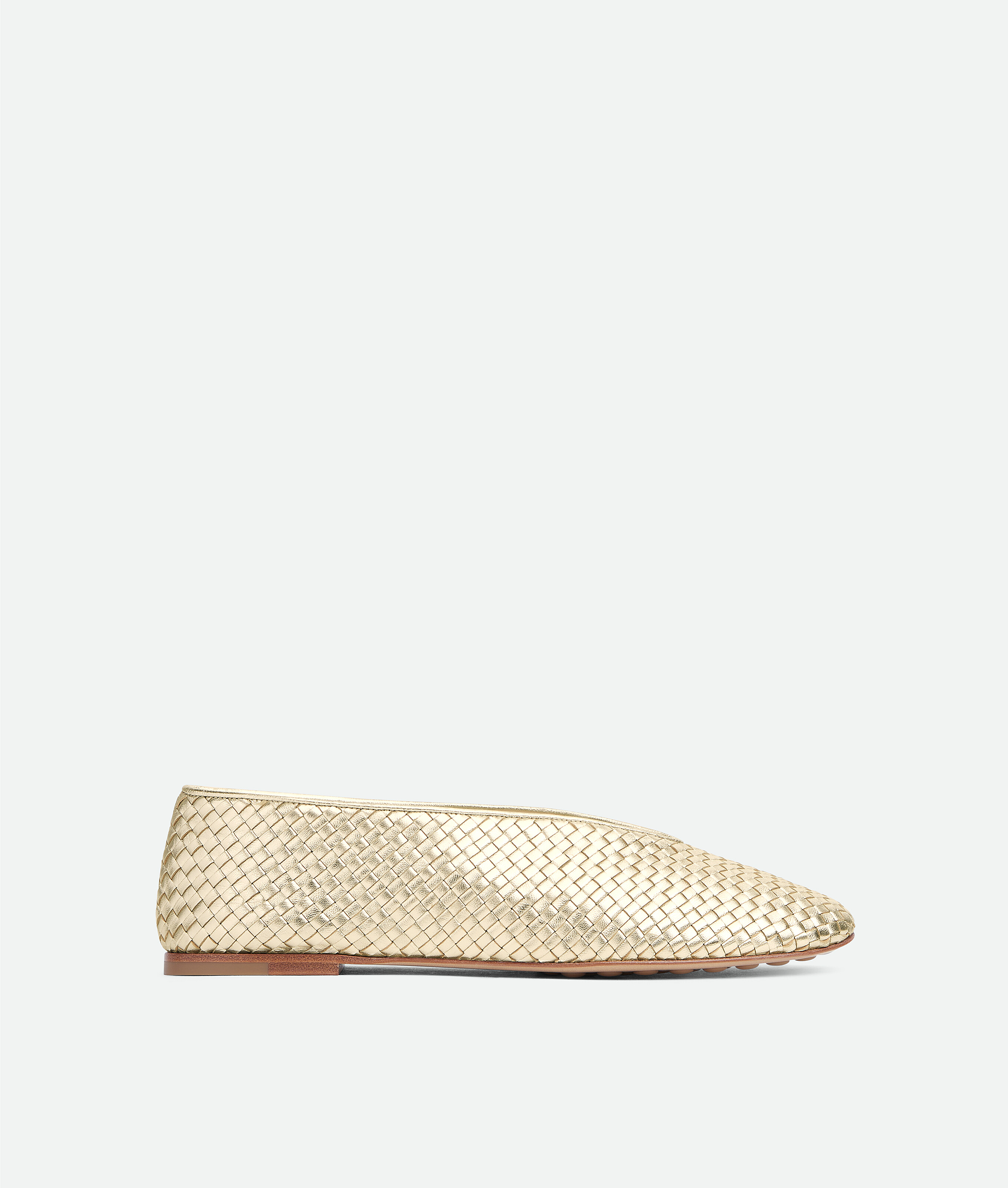 Ballerina in mini Intrecciato laminated lambskin leather with supple construction and smooth piping detail.