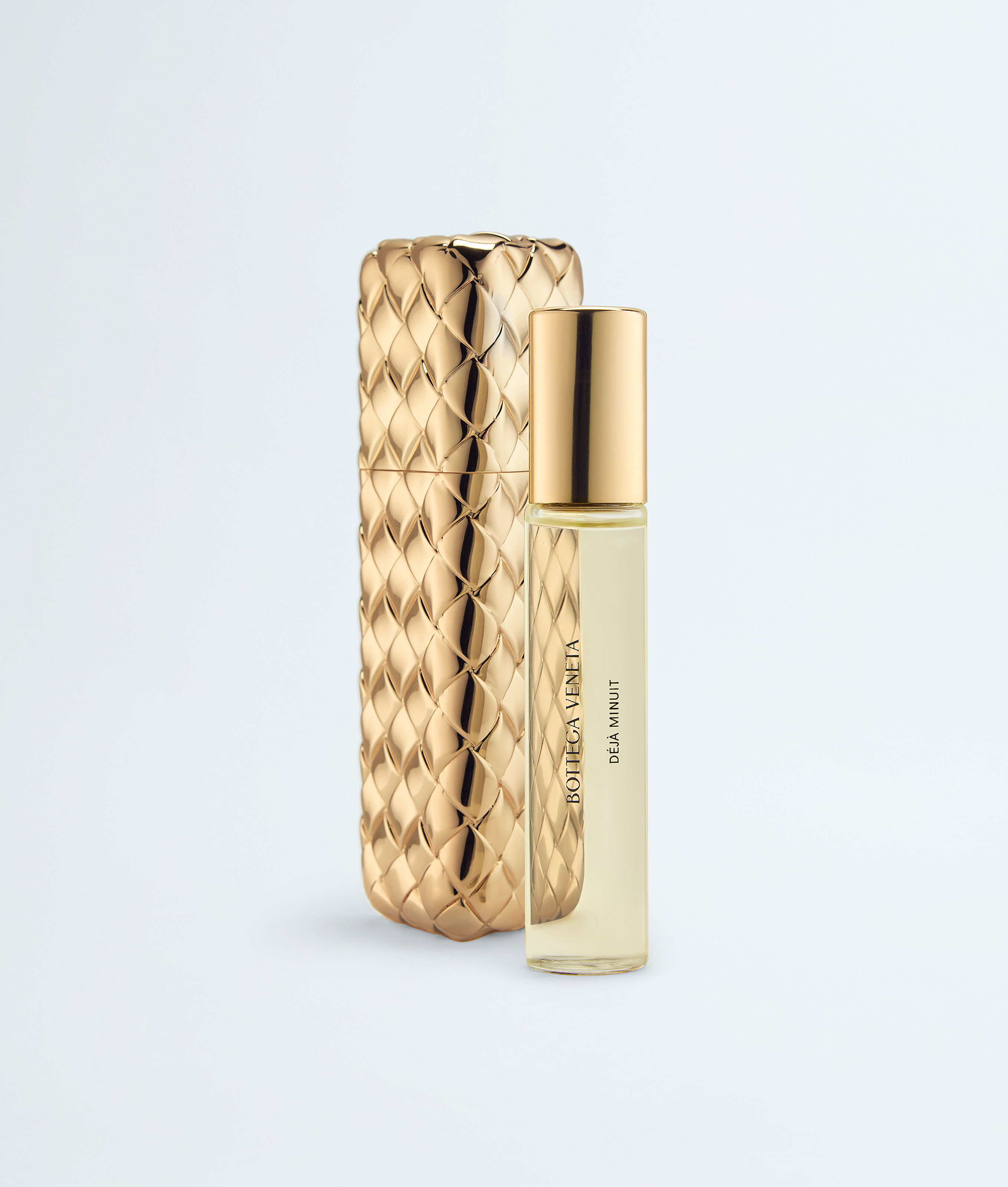 A new travel edition brings Bottega Veneta's fragrance collection on the go. Housed in a refillable gold-finished case with signature Intreccio motif, this set includes a 15ml Déjà Minuit travel spray.