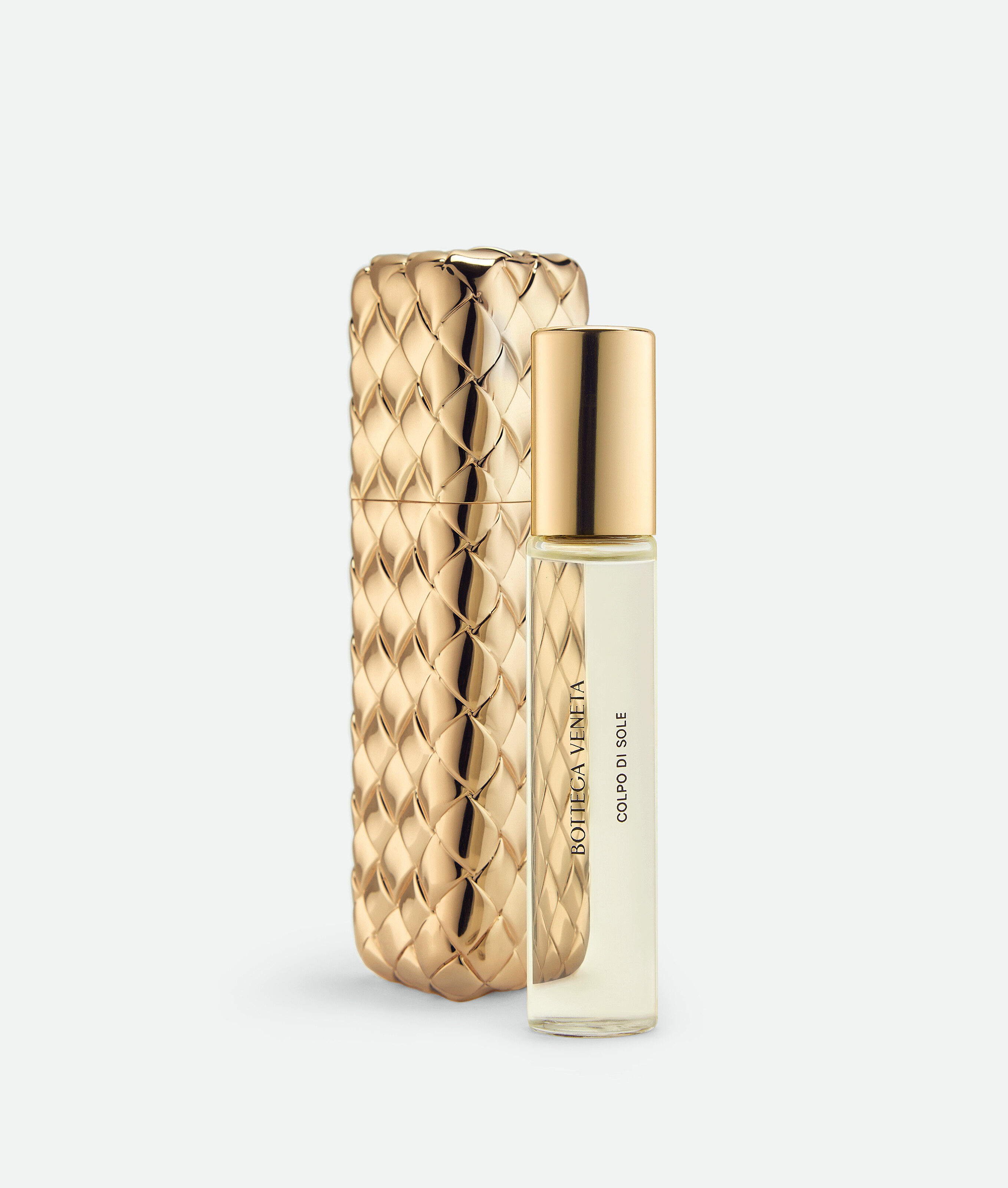 A new travel edition brings Bottega Veneta's fragrance collection on the go. Housed in a refillable gold-finished case with signature Intreccio motif, this set includes a 15ml Colpo di Sole travel spray, and an empty spare to be used with any Bottega Veneta Refill of your choice.