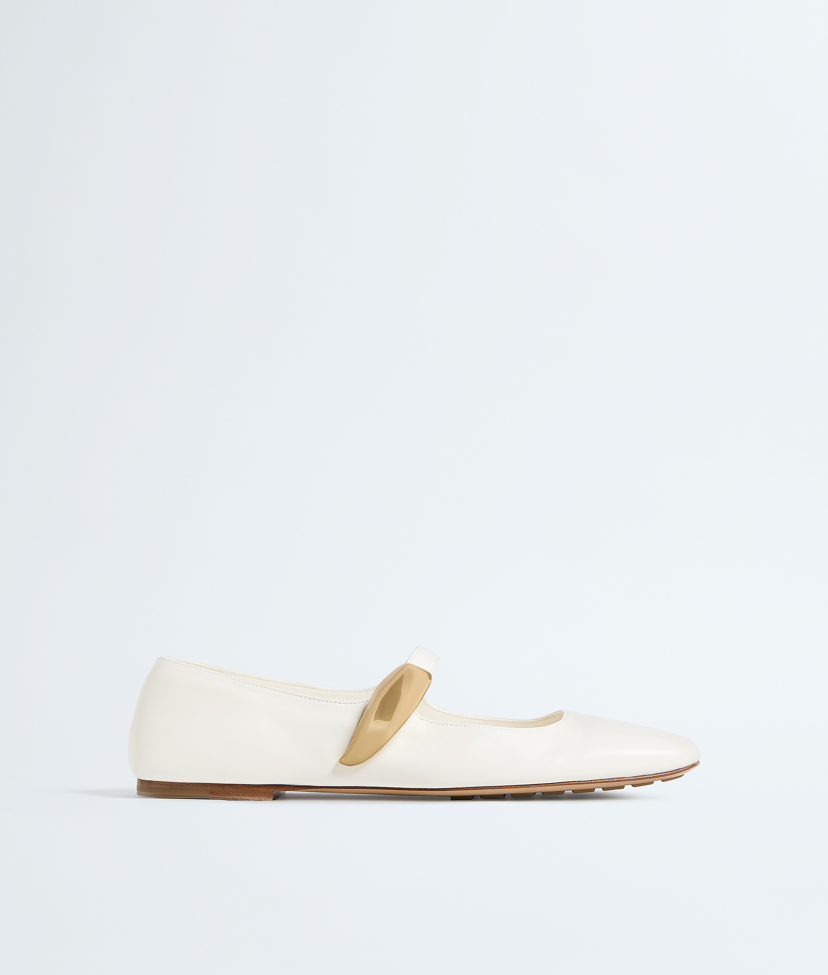 Mary-Jane ballerina with squared toe in nappa leather, featuring a sculptural, Prisma-inspired detail on the strap.