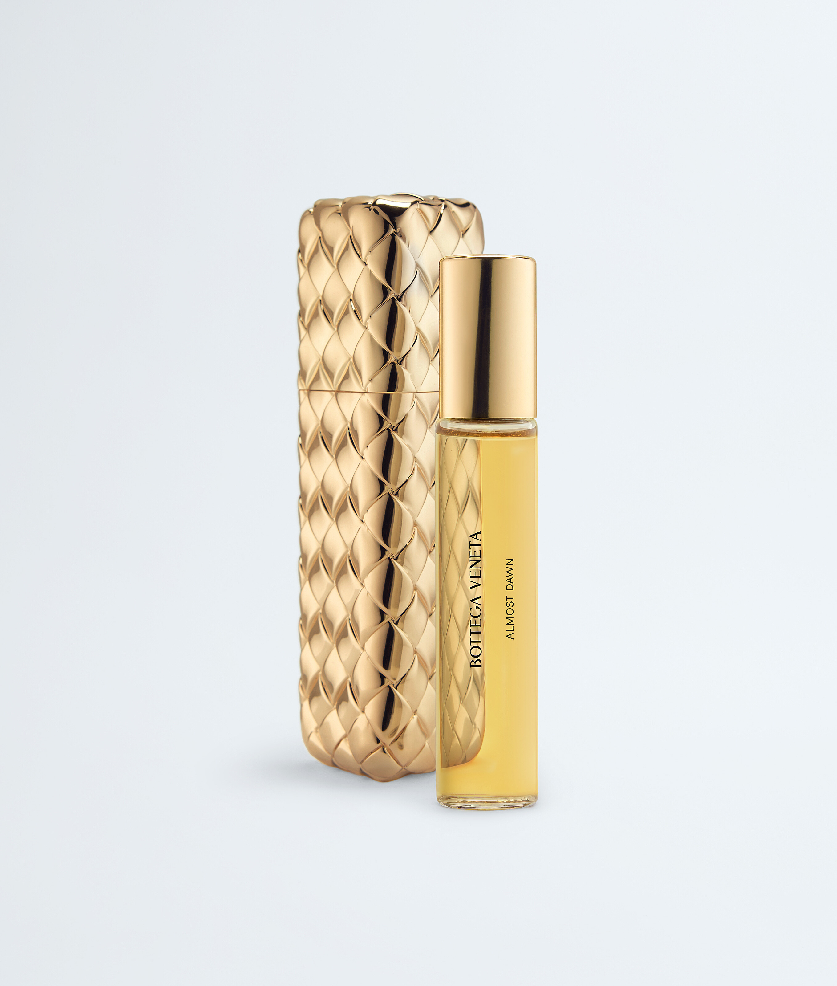 A new travel edition that brings Bottega Veneta's fragrance collection on the road. Housed in a refillable gold-finished case with the signature Intreccio motif, this set includes a 15 ml (0.50 fl.oz.) Almost Dawn travel spray.