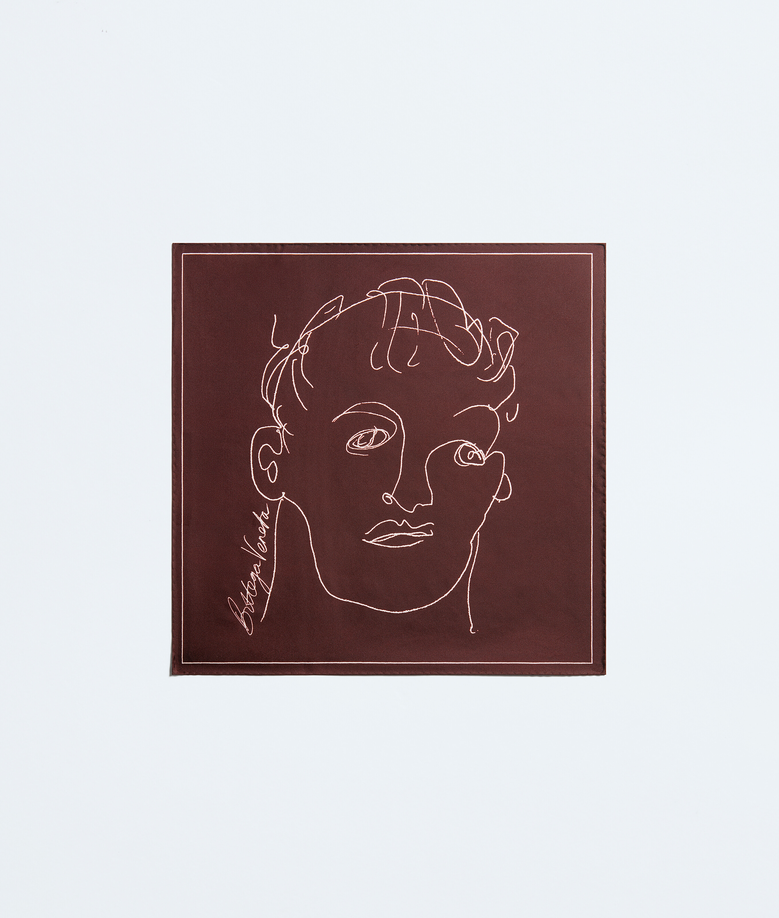Foulard in classic silk twill, featuring a doodled face print
