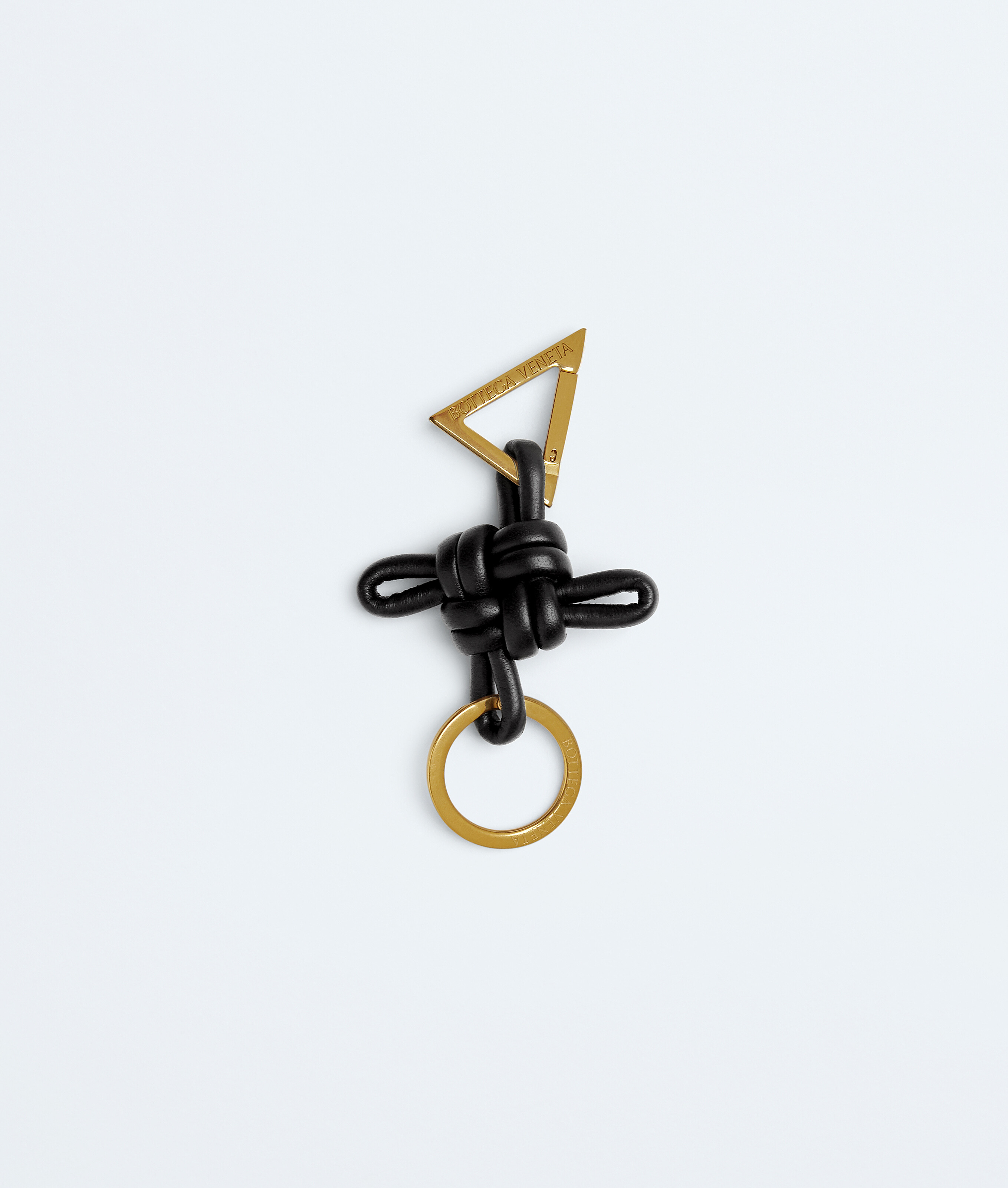 Porte-clés en cuir nappa Intreccio avec double nœud et mousqueton triangulaire.