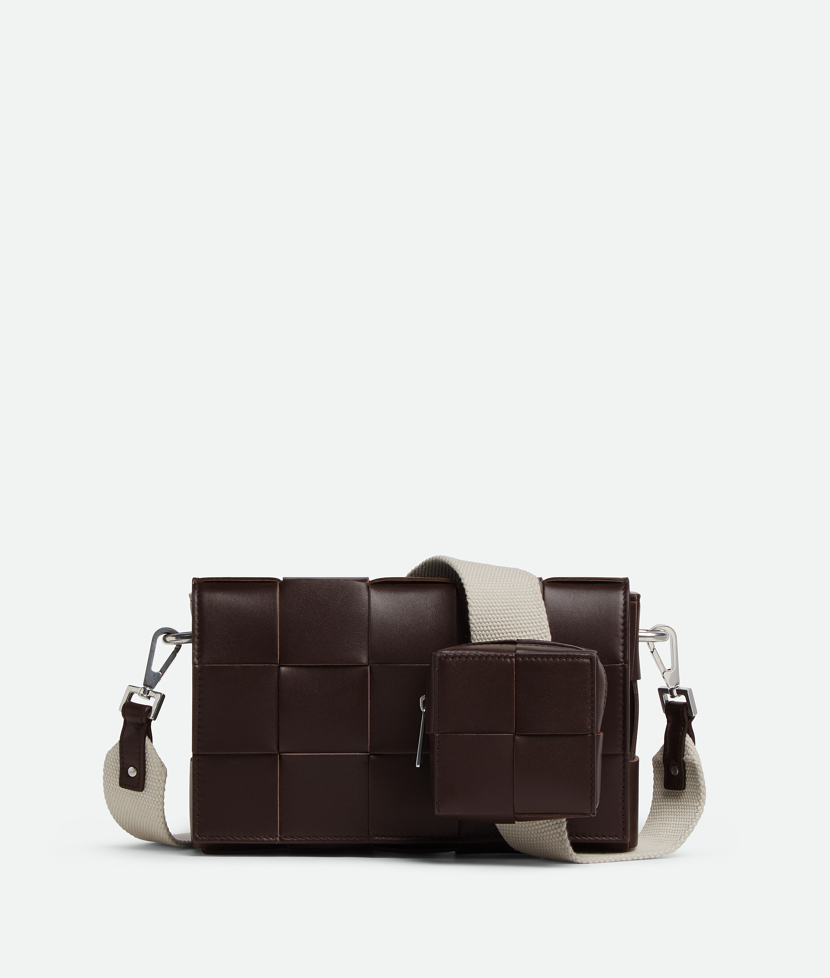 Sac bandoulière réalisé artisanalement en cuir Intreccio avec pochette à zip coulissante sur sangle ajustable en toile.