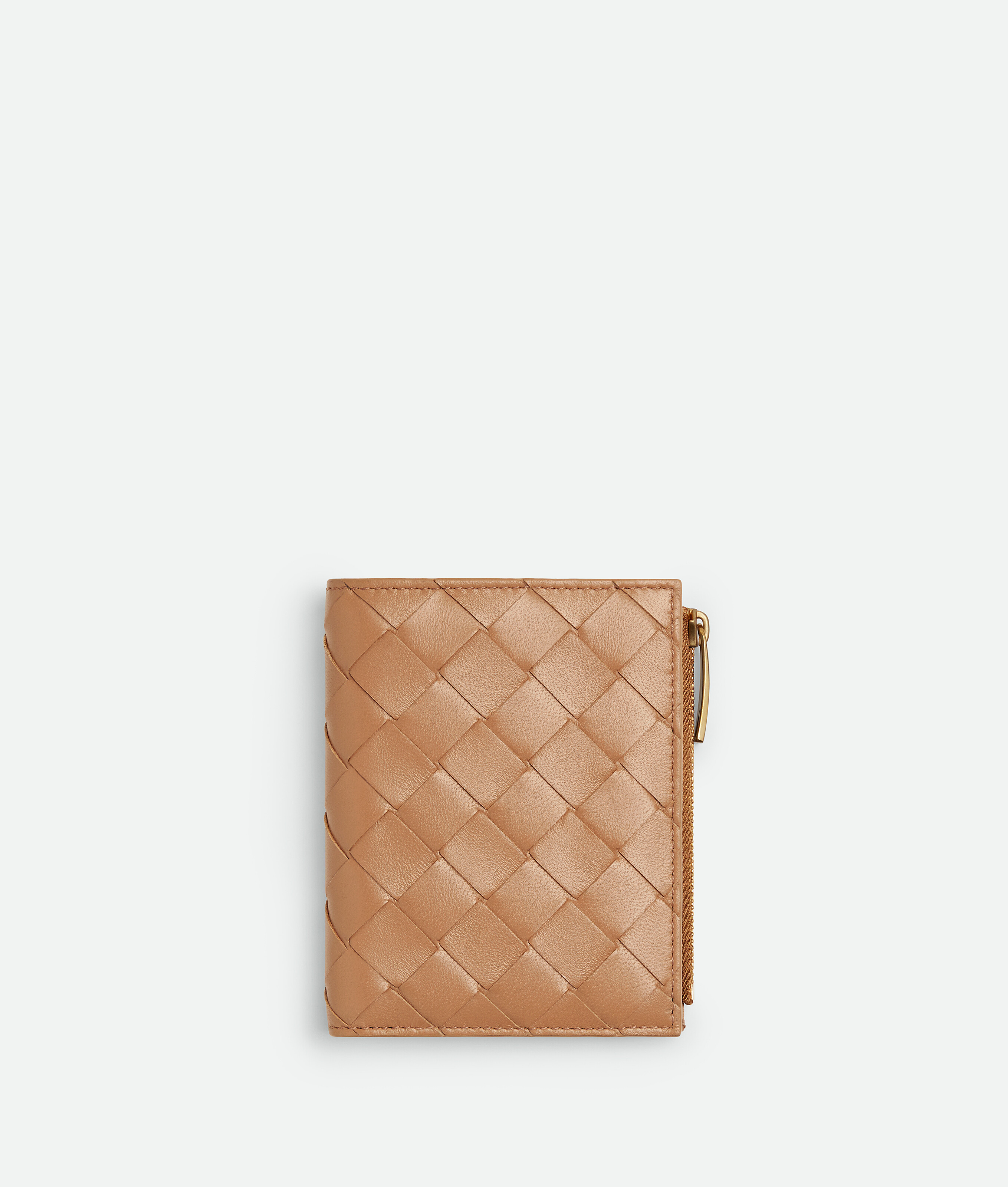 Portefeuille à deux volets petit format en cuir nappa Intrecciato.