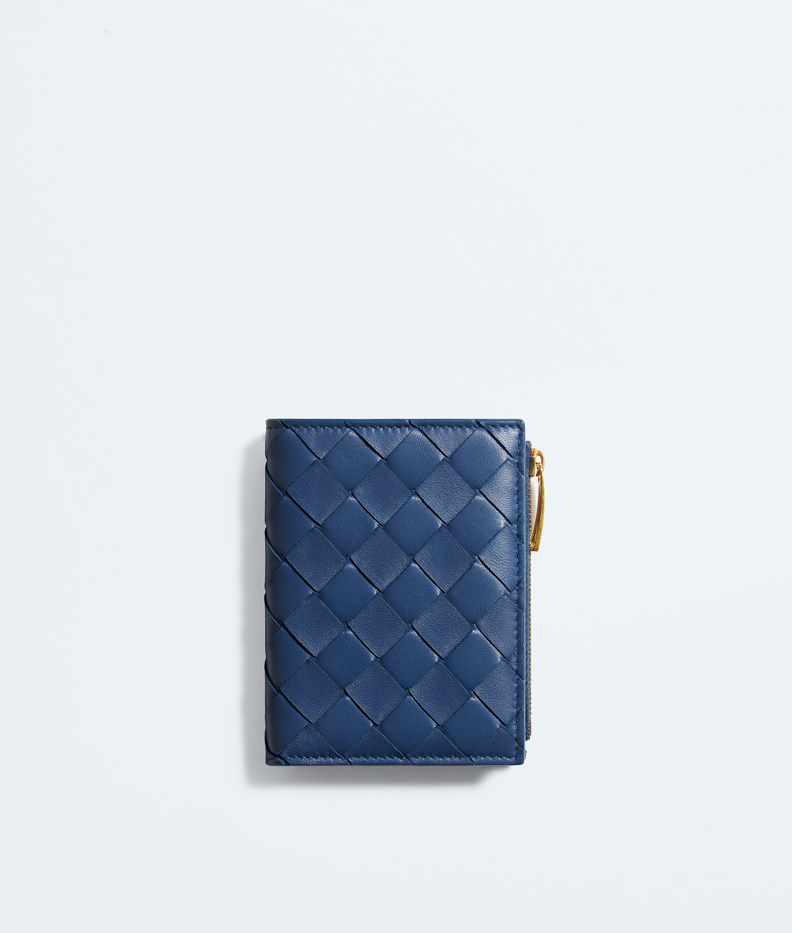 Portefeuille à deux volets petit format en cuir nappa Intrecciato.