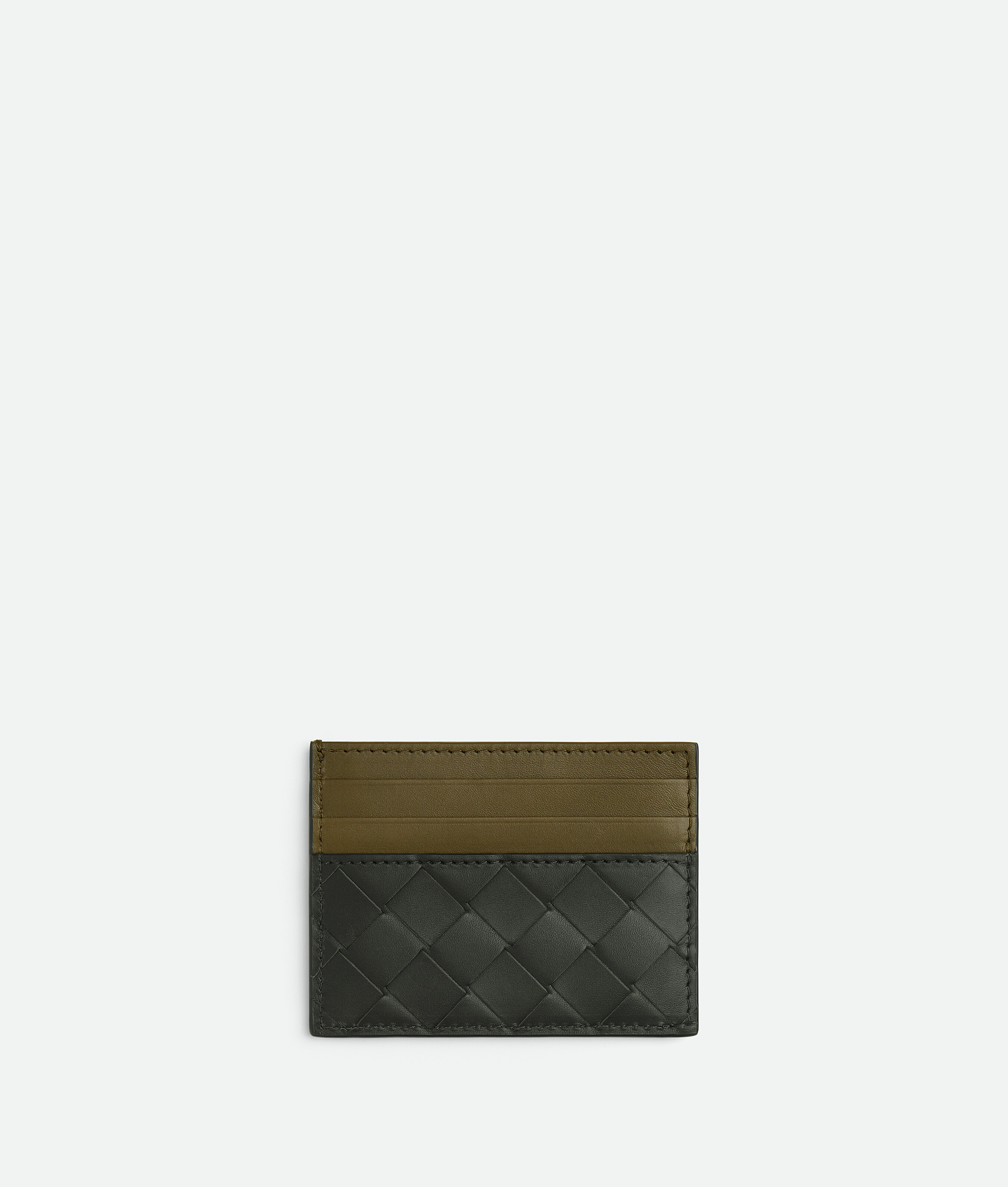 Étui pour cartes en cuir de veau Intrecciato avec intérieur contrastant