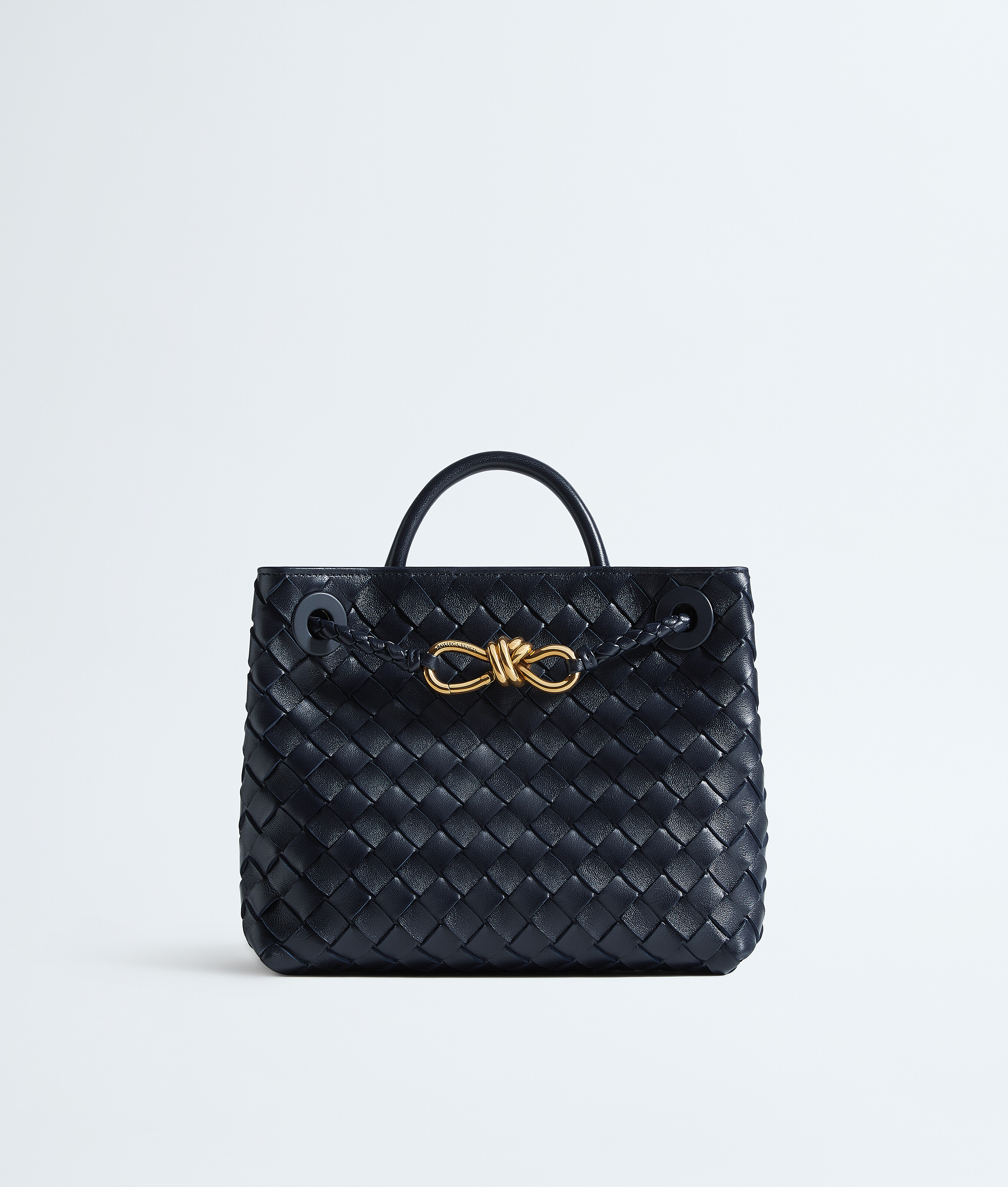 Sac à main en cuir souple Intrecciato, avec bandoulière coulissante et détail knot signature.