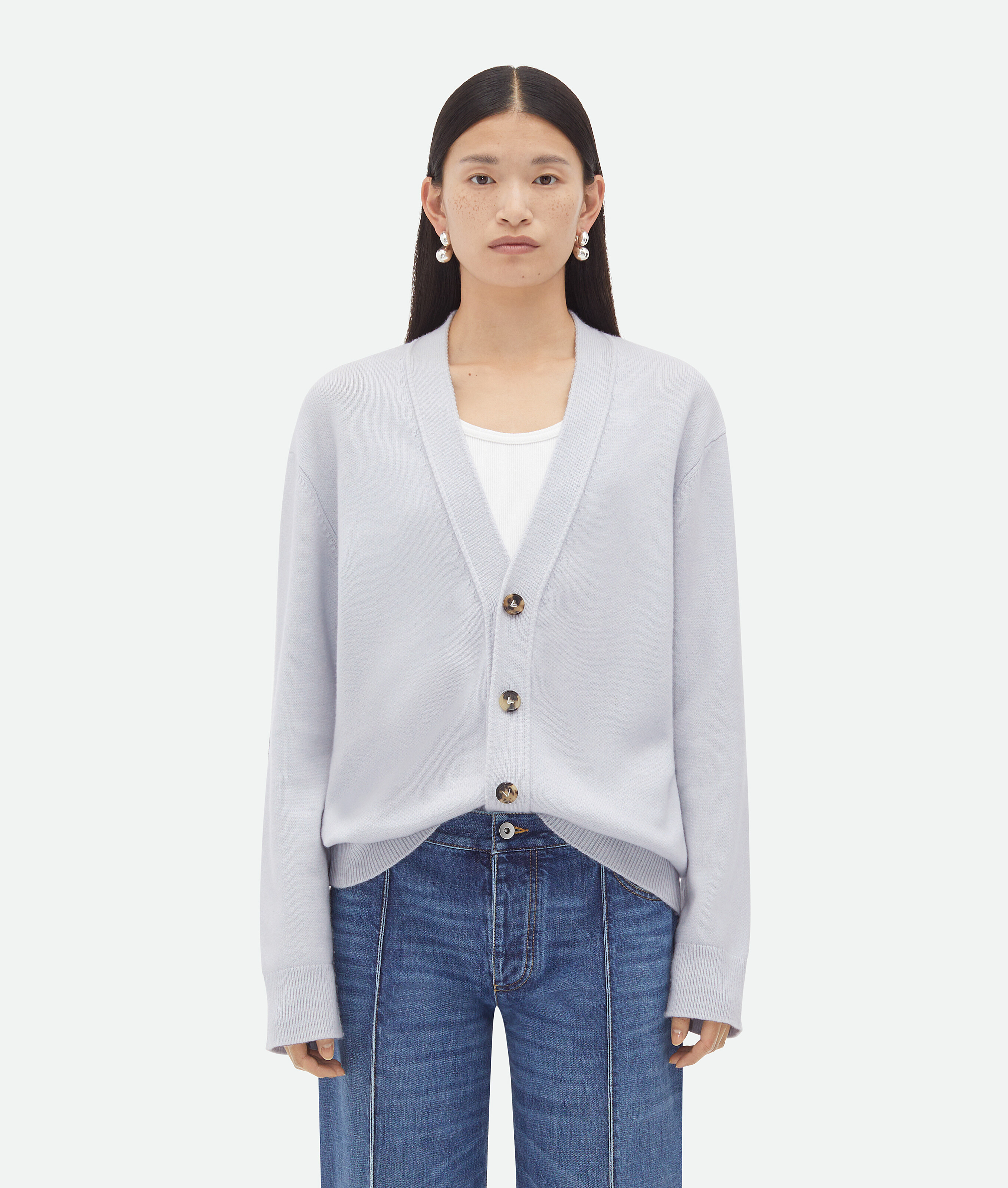 Cardigan en cachemire avec patchs en cuir Intrecciato signature.