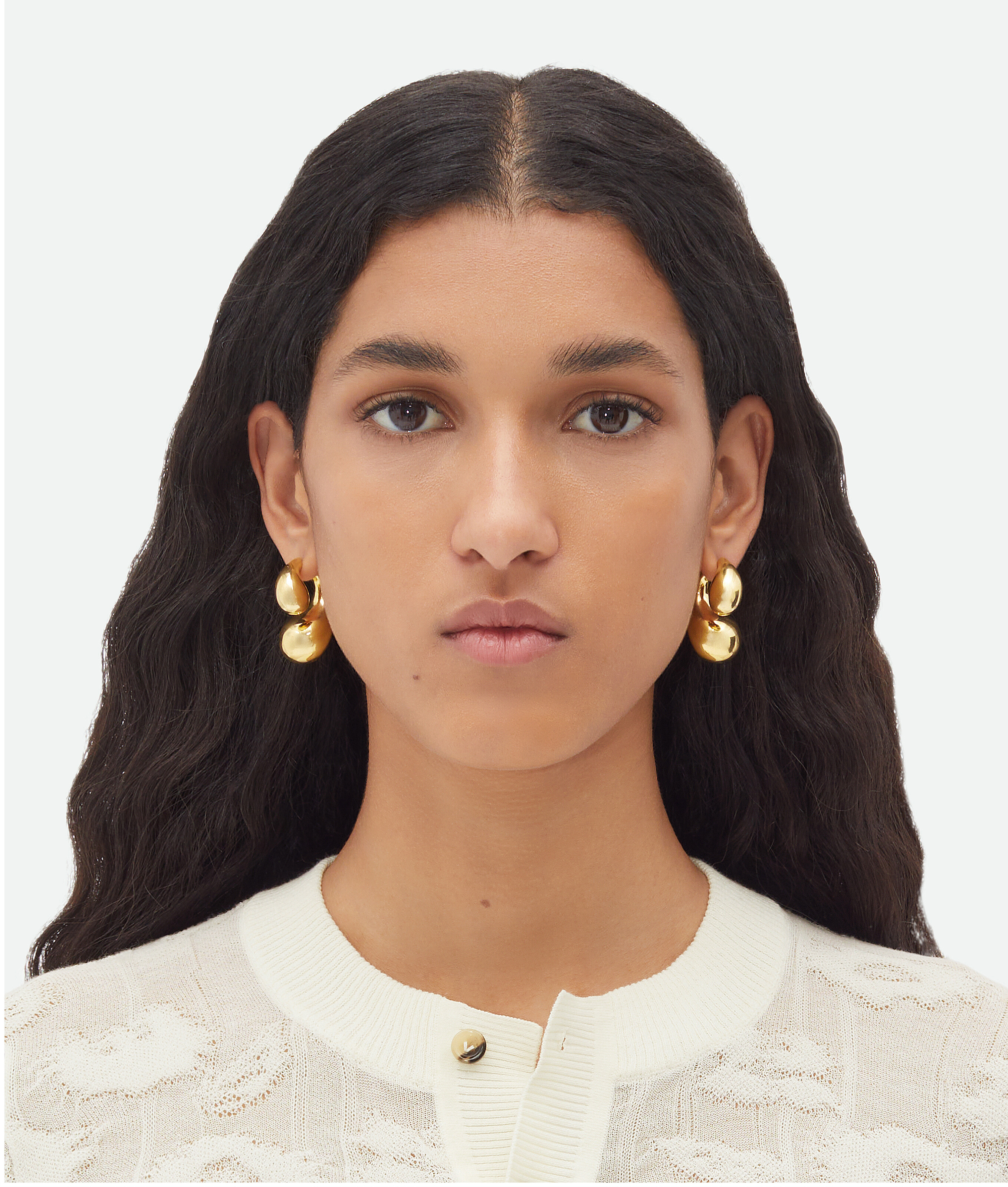Boucles d'oreilles reprenant la forme de double goutte d'eau signature réalisées grâce en argent massif utlra-léger doré à l'or fin 18K.