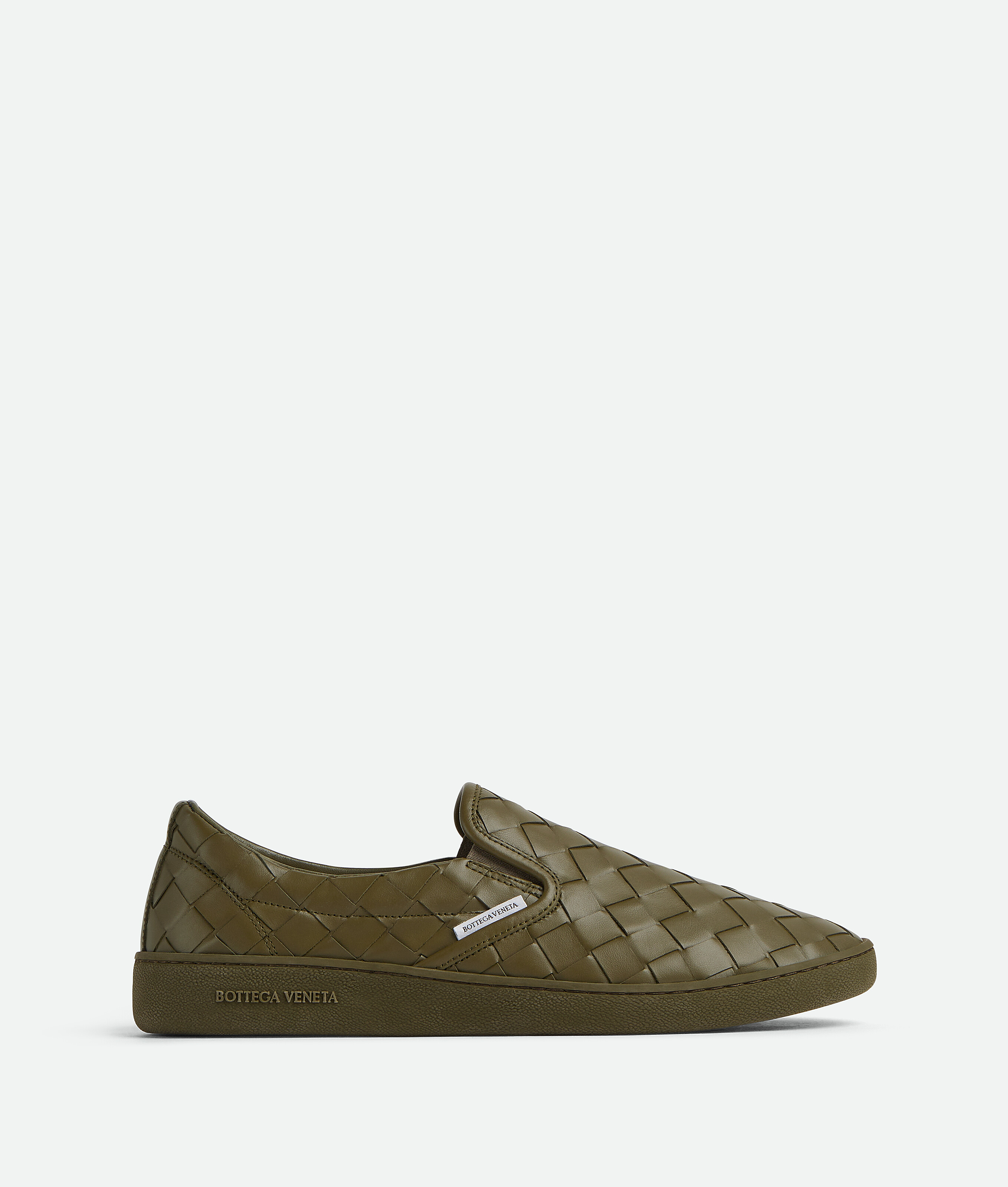 Basket slip on réalisée en cuir de veau souple entièrement tressé Intrecciato.