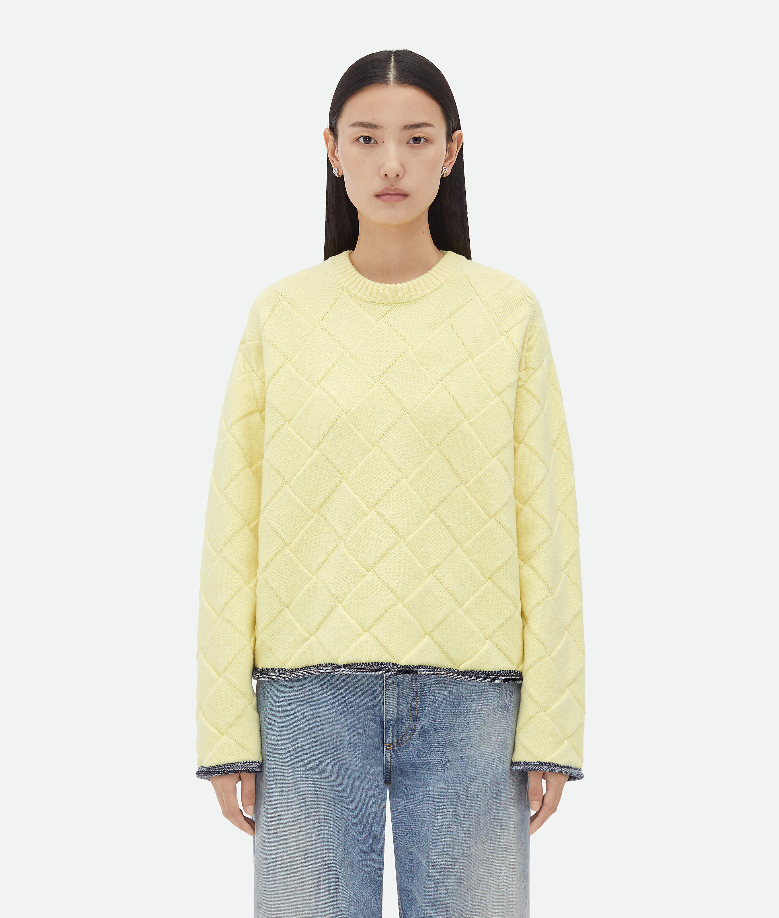 Pull à col rond réalisé en laine douce tricotée en 3D pour réaliser le motif Intreccio signature. Coutures contrastées.