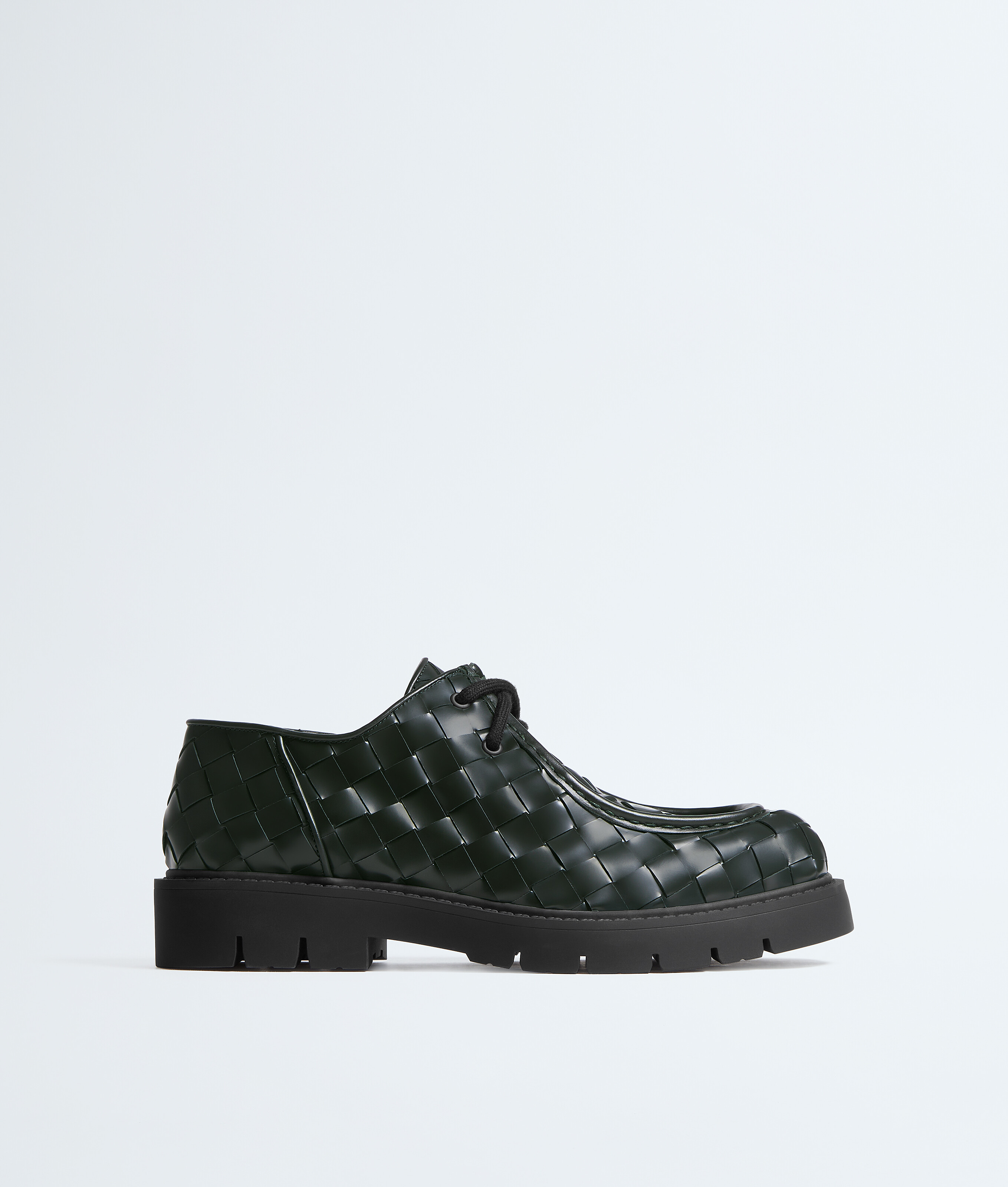 Chaussures à lacets en cuir de veau lisse à construction Intrecciato artisanale.