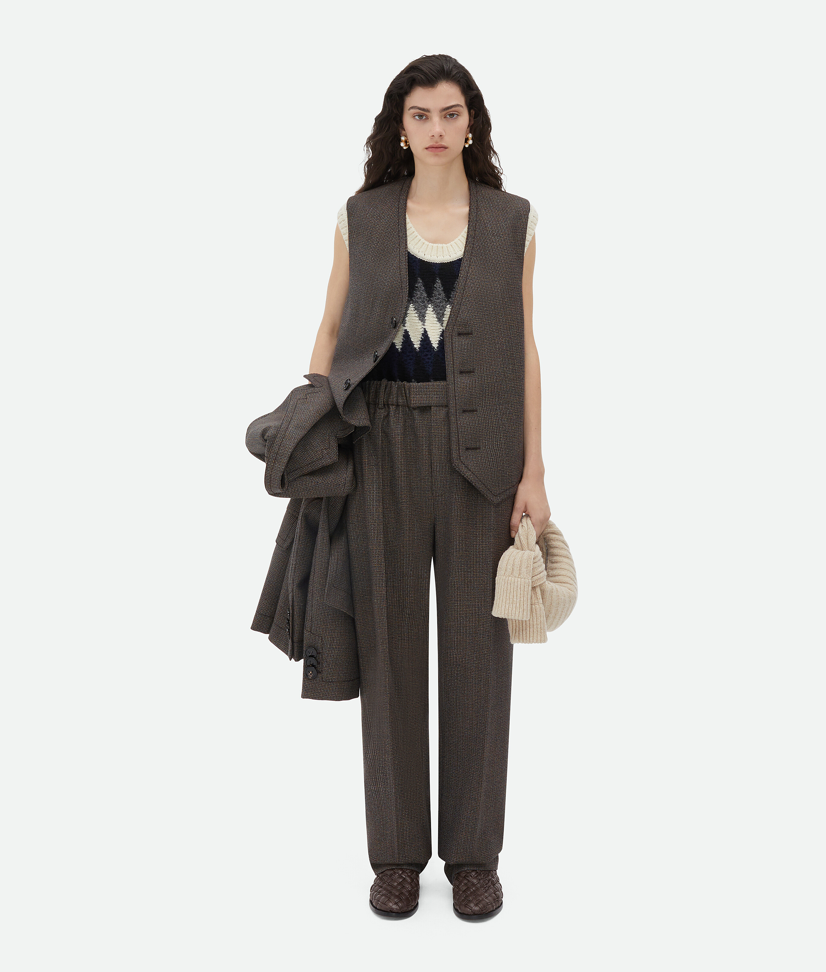 Gilet en laine fine pied-de-poule emblématique de la saison.