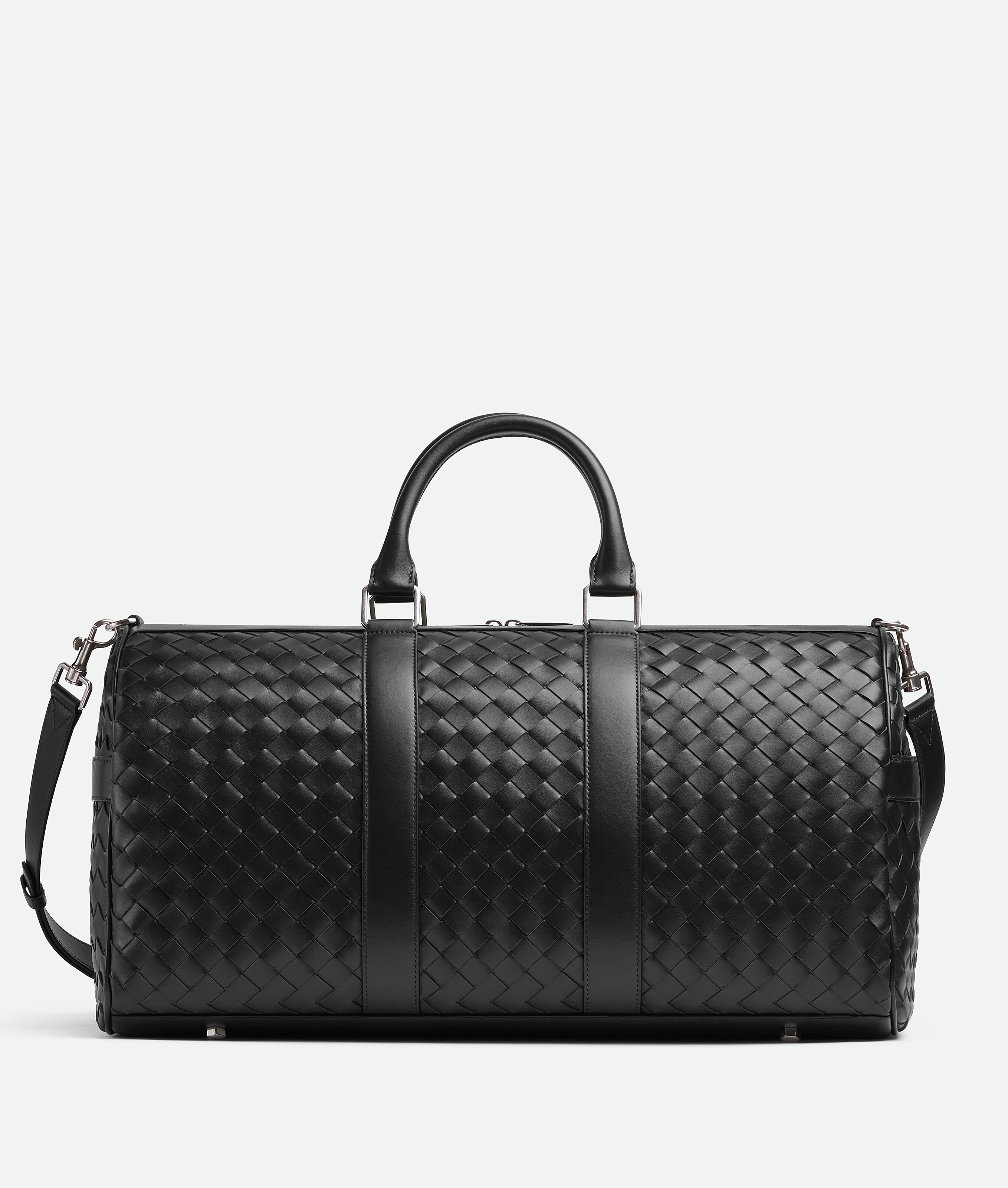 Sac de voyage en cuir Intrecciato avec bandoulière ajustable et amovible.