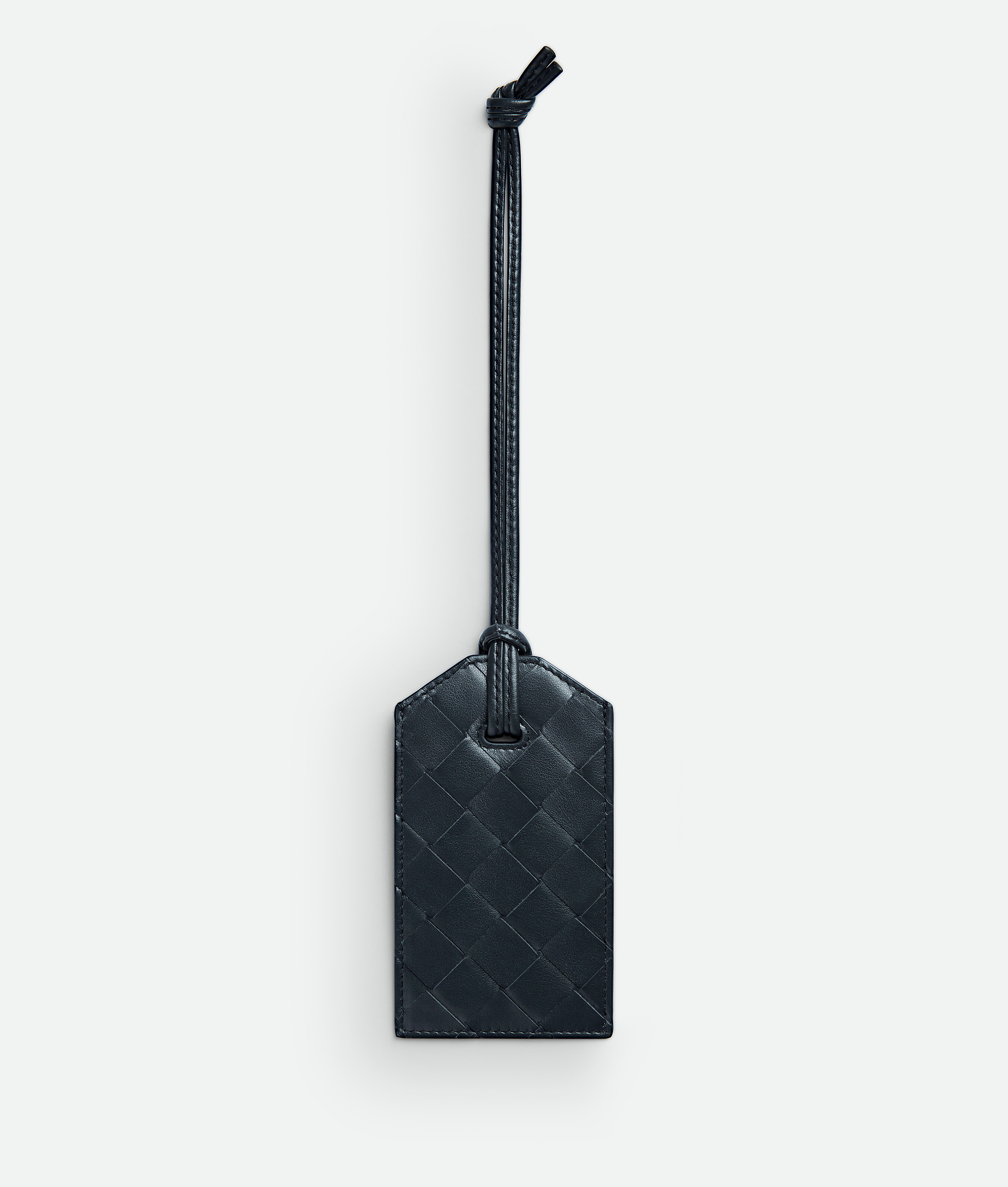 Porte-étiquette à bandoulière en cuir de veau Intrecciato.