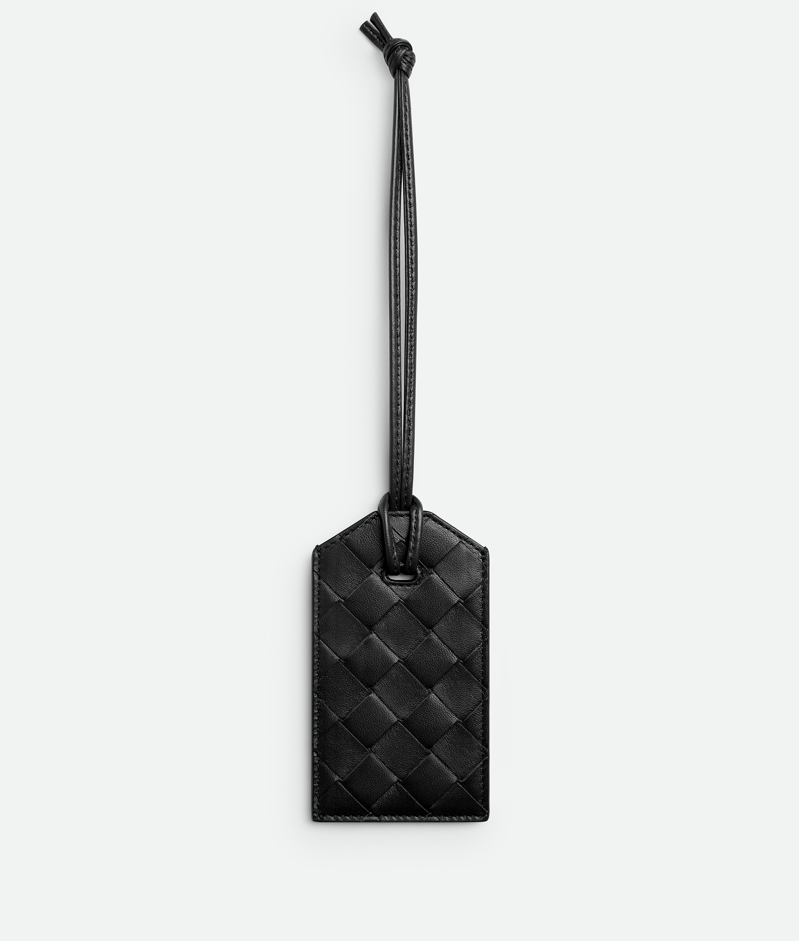Porte-étiquette à bandoulière en cuir de veau Intrecciato.