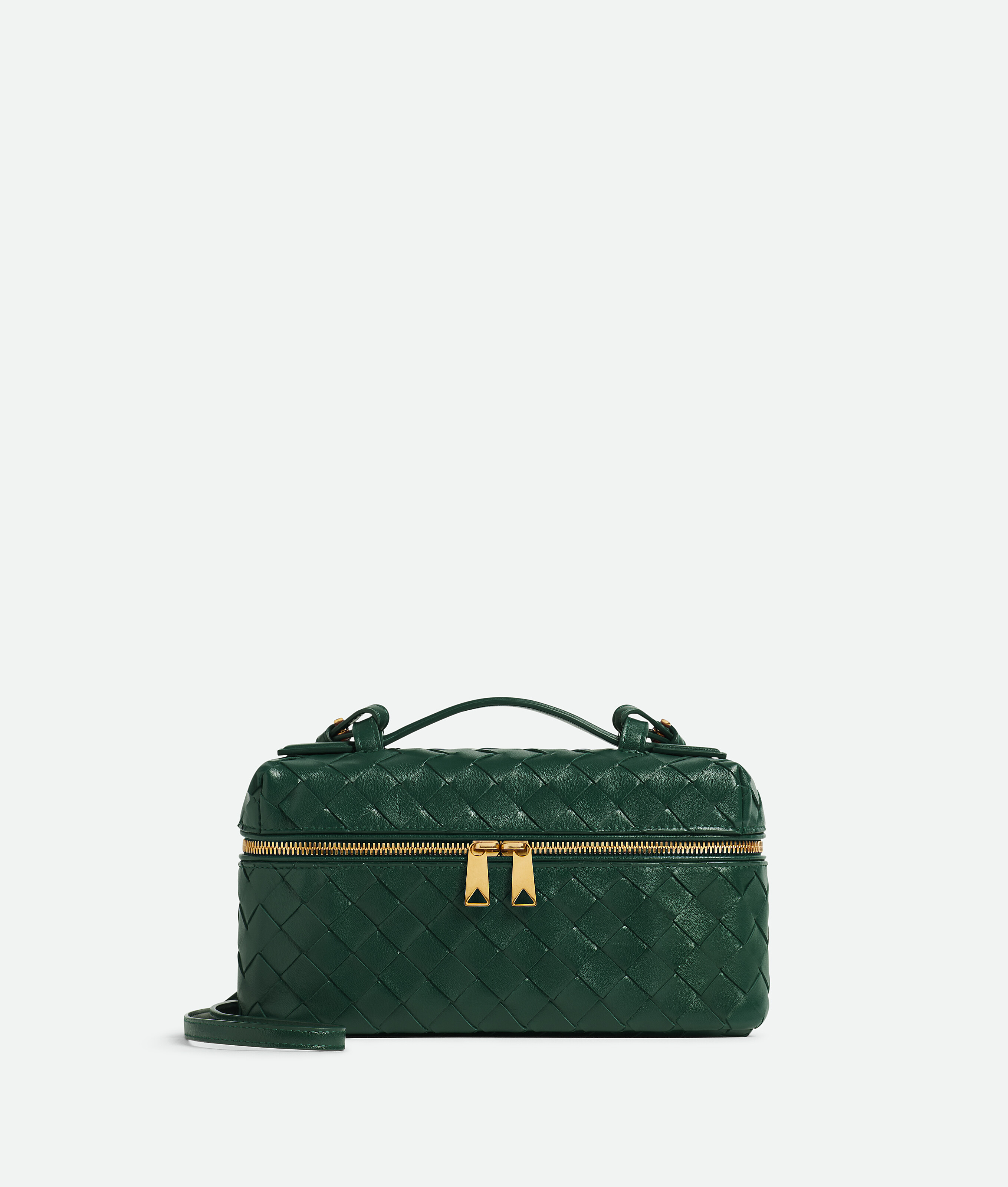 Vanity case en cuir Intrecciato avec bandoulière amovible.