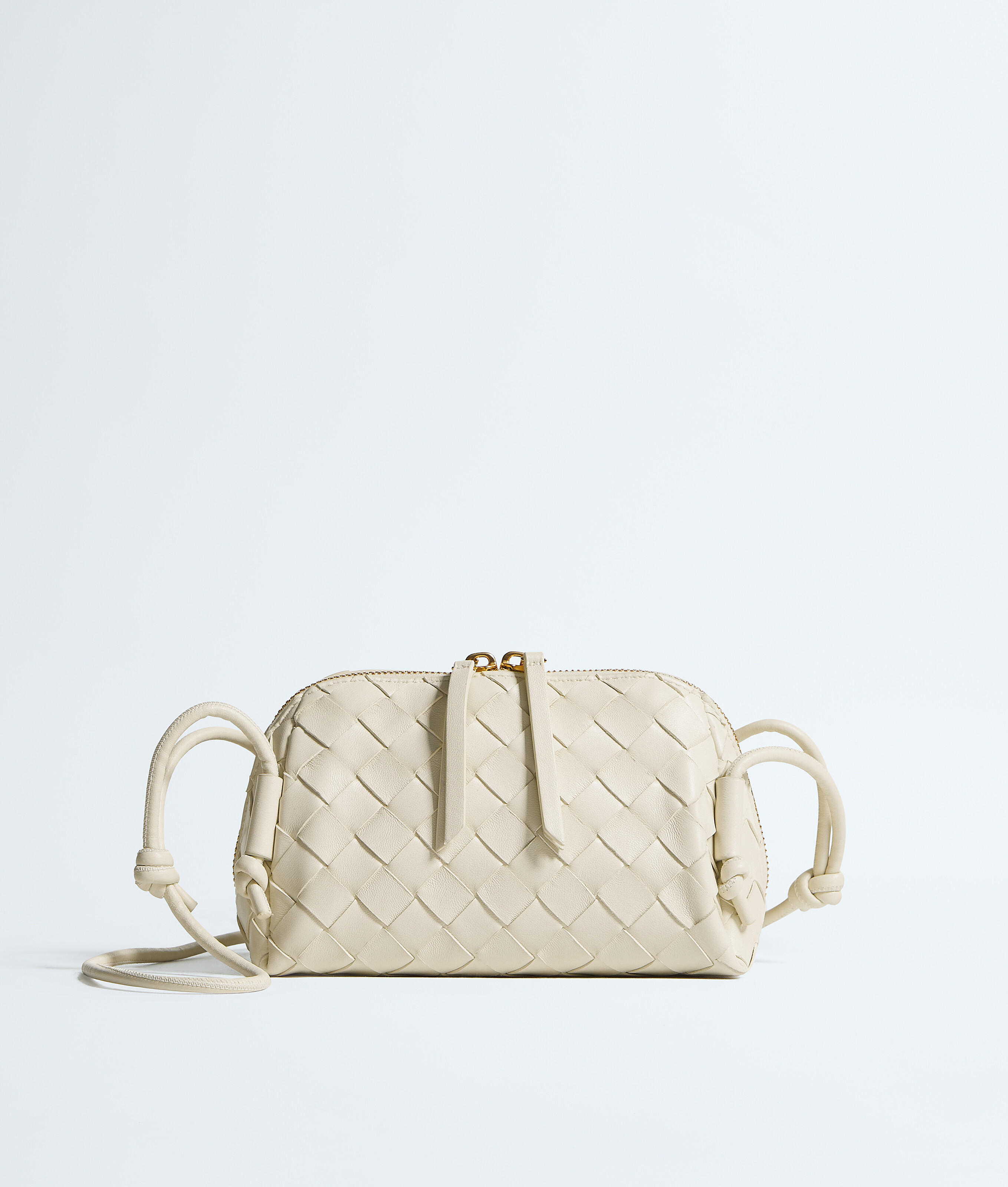 Pochette en cuir nappa Intrecciato avec bandoulière tubulaire réglable.