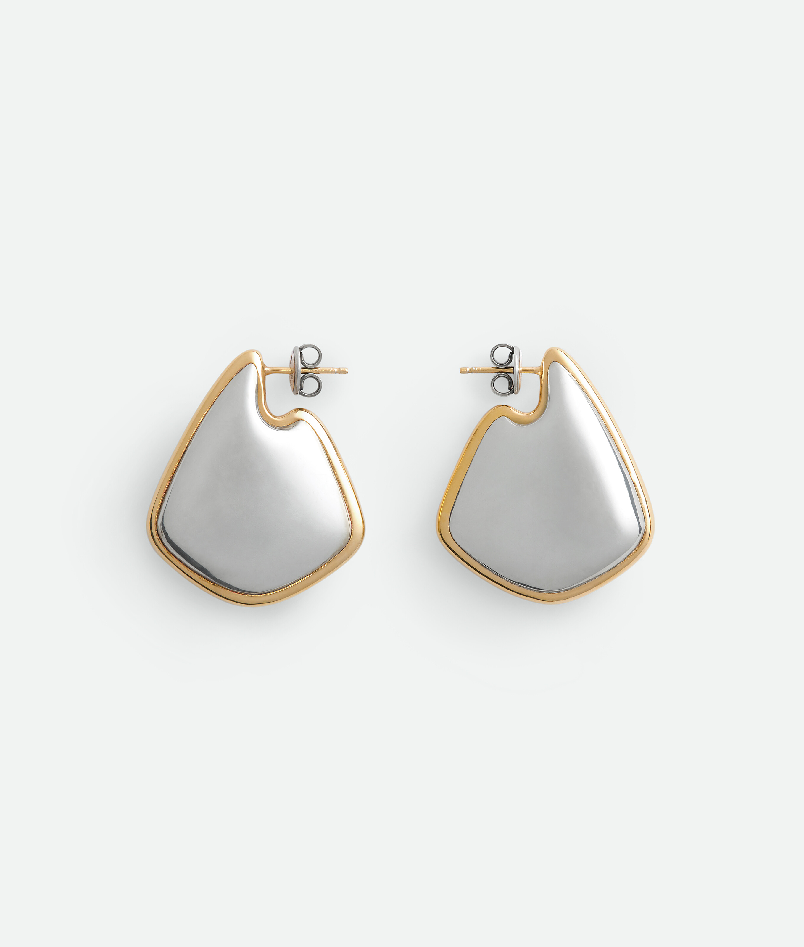 Boucles d'oreilles géométriques inspirées des nageoires en argent massif doré à l'or fin 18 carats bicolore.