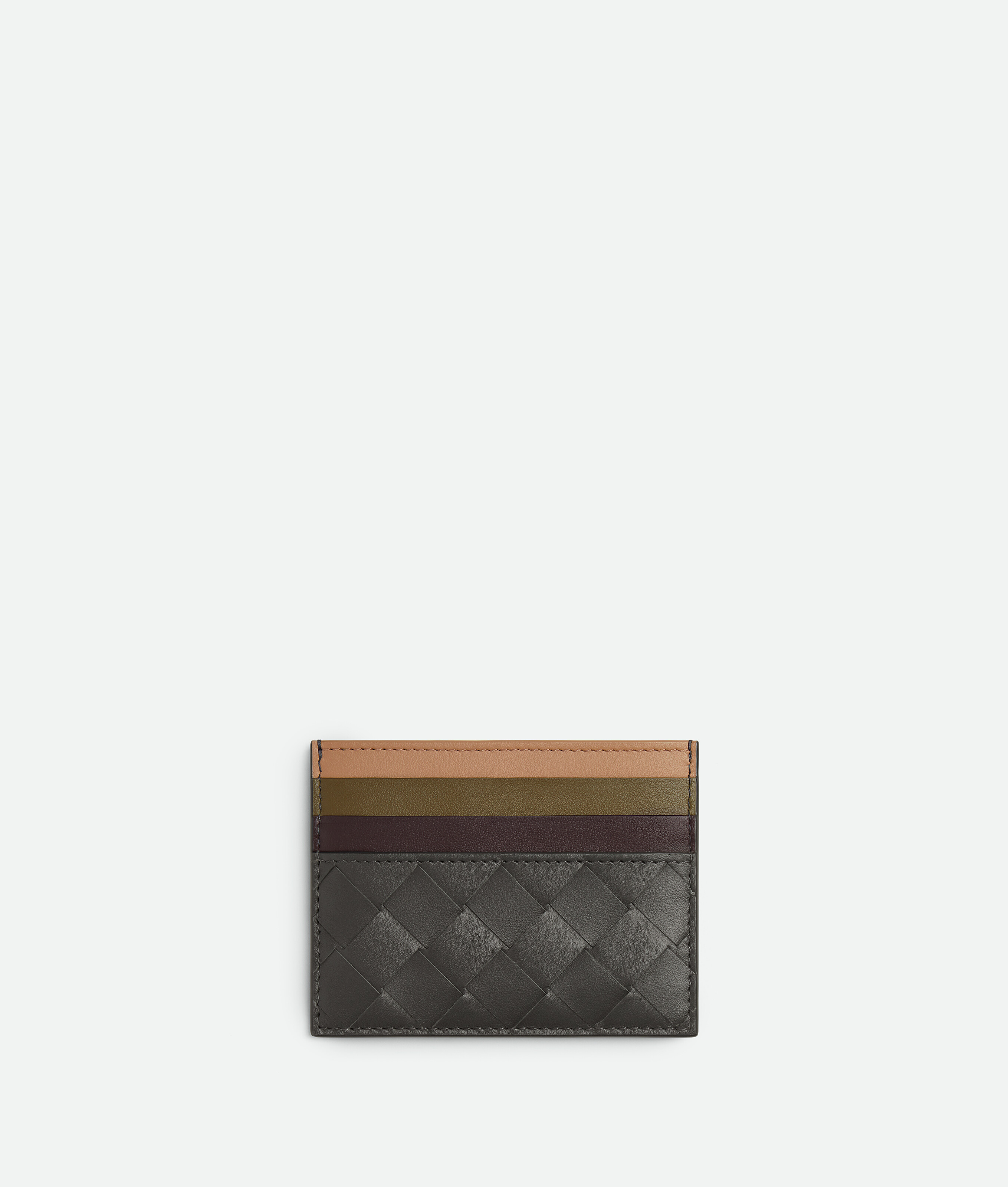 Étui pour cartes de crédit en cuir de veau Intrecciato avec emplacements pour cartes multicolores.