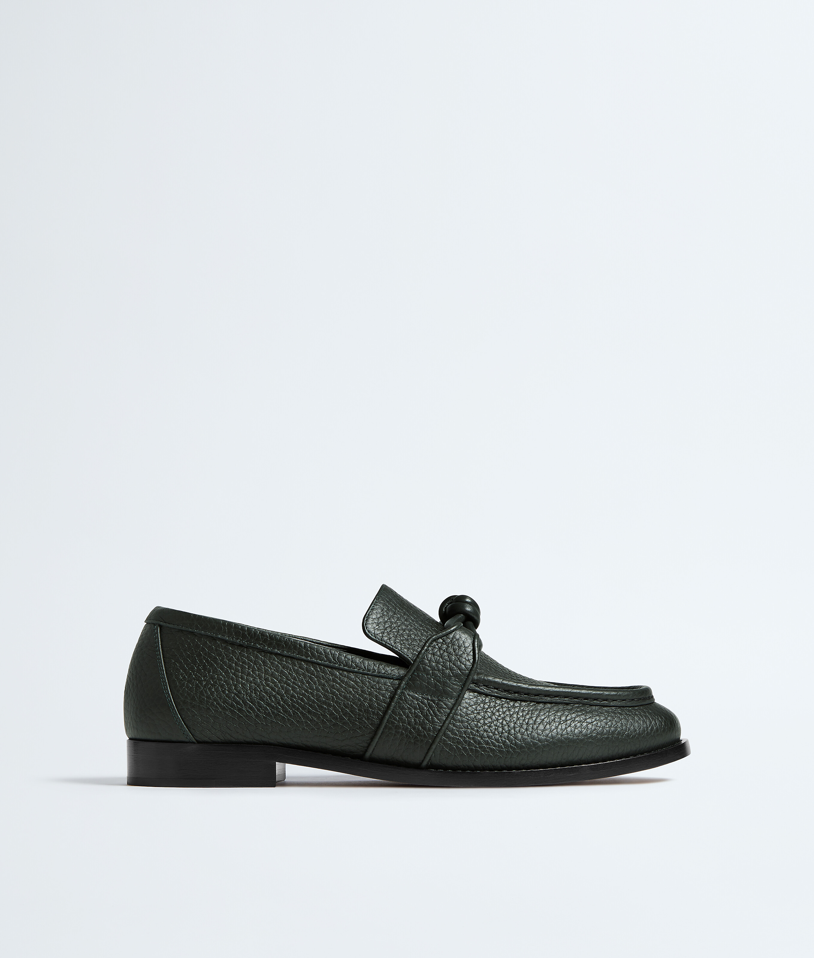 Mocassin en cuir de veau grainé avec détail knot signature.