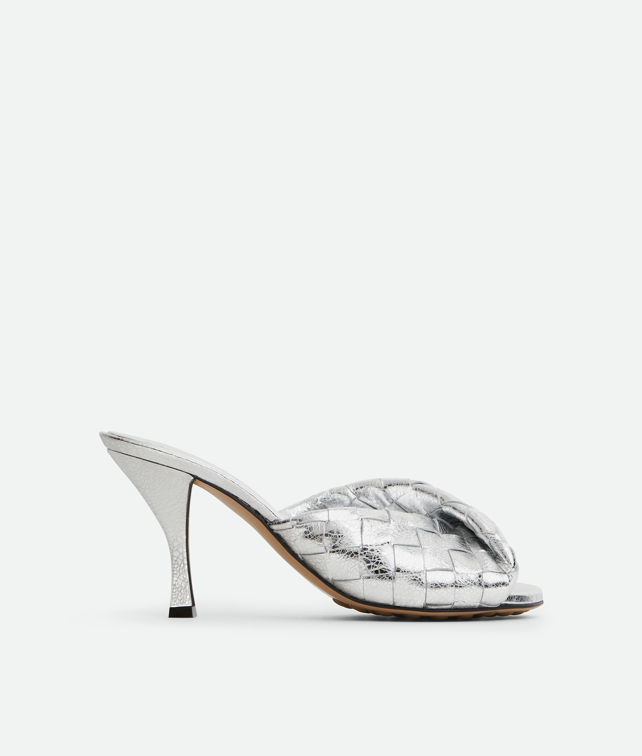 Mule en cuir laminé Intrecciato à détail plié.