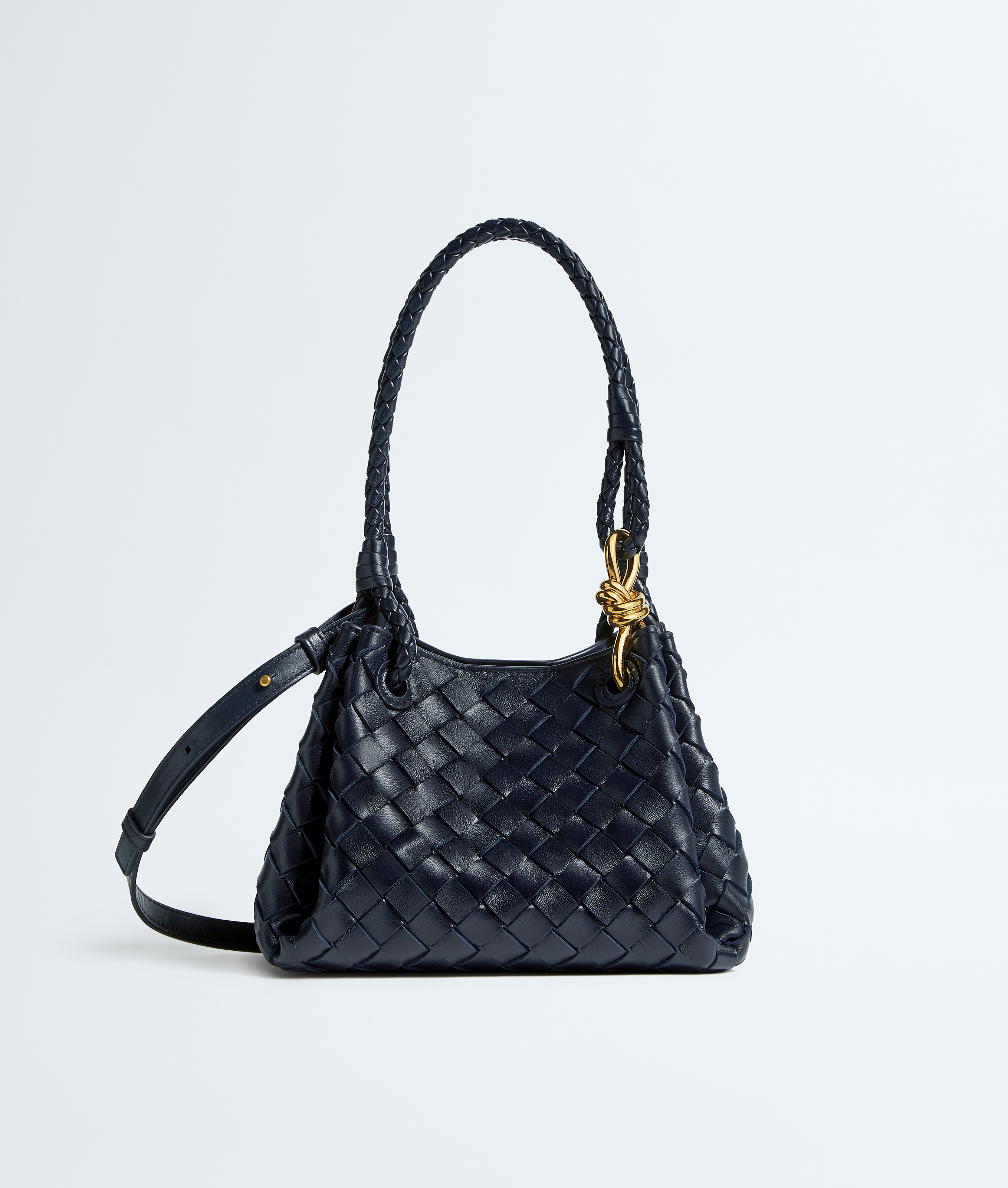 Sac porté épaule en cuir souple Intrecciato, avec chaîne en bandoulière amovible et détail knot signature.