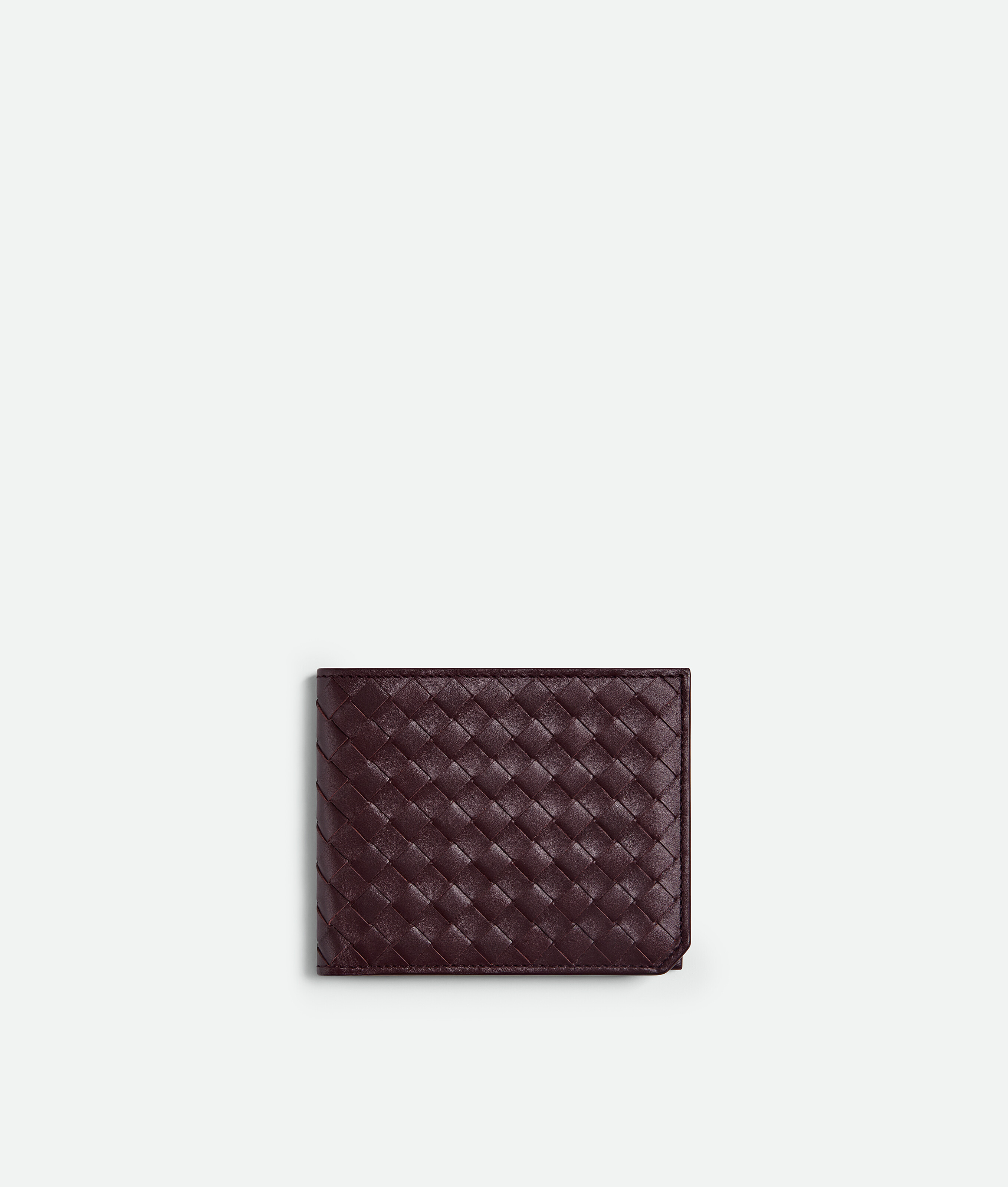 Portefeuille à deux volets en cuir Intrecciato Piccolo.