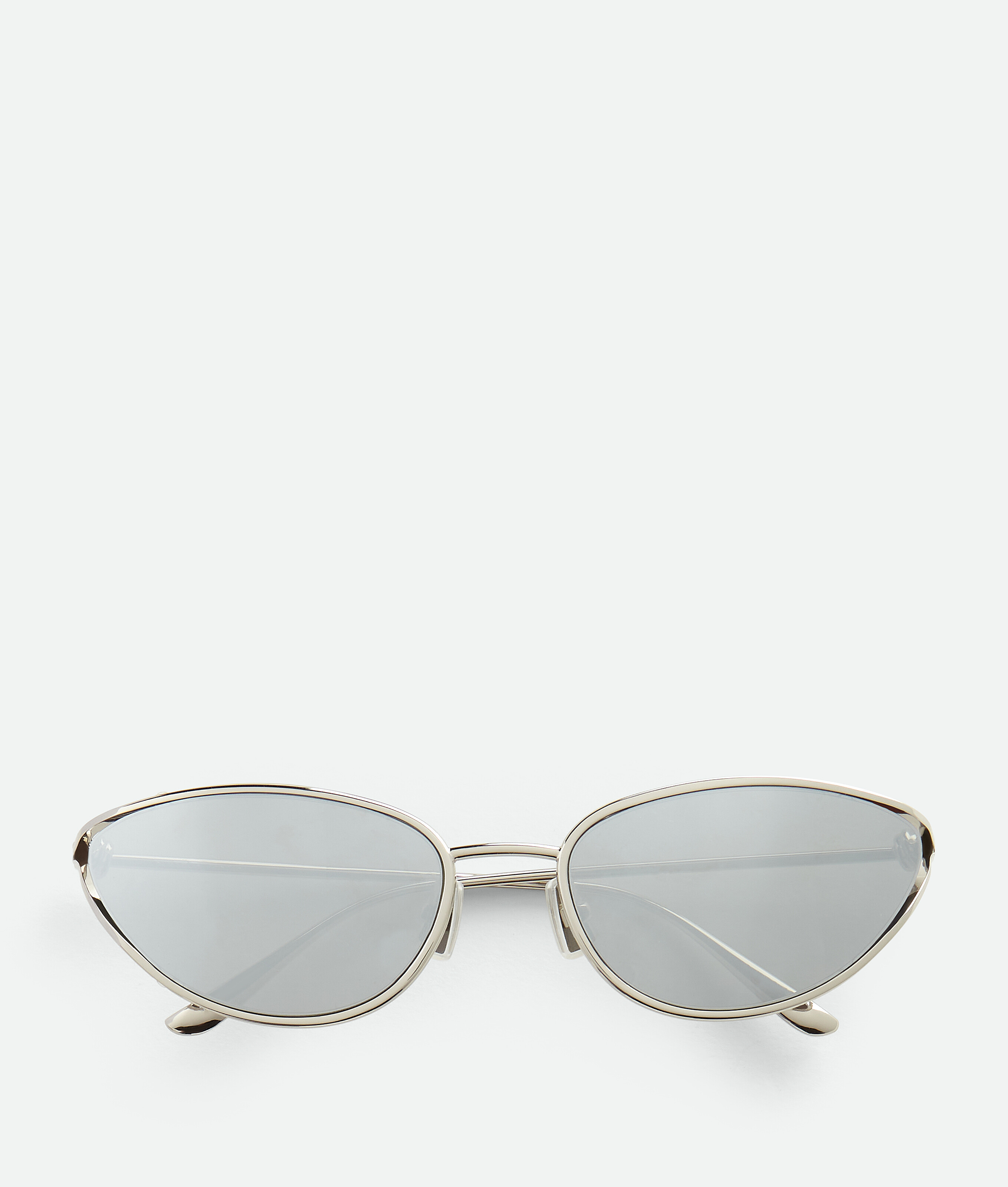 Lunettes de soleil œil de chat en métal avec détail signature sur les branches. Fabriquées au Japon.