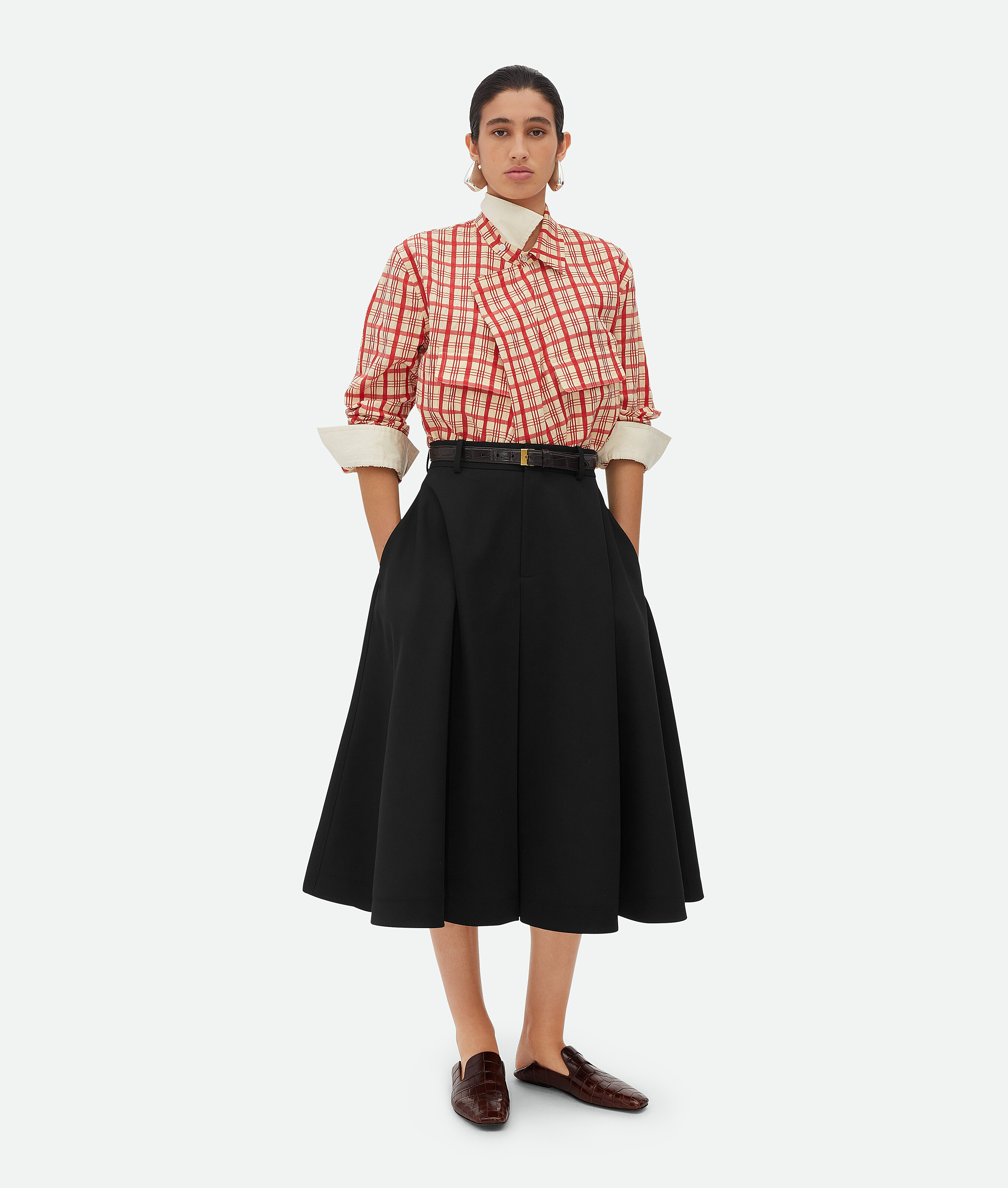 Jupe à silhouette en trapèze en laine compacte grain de poudre.