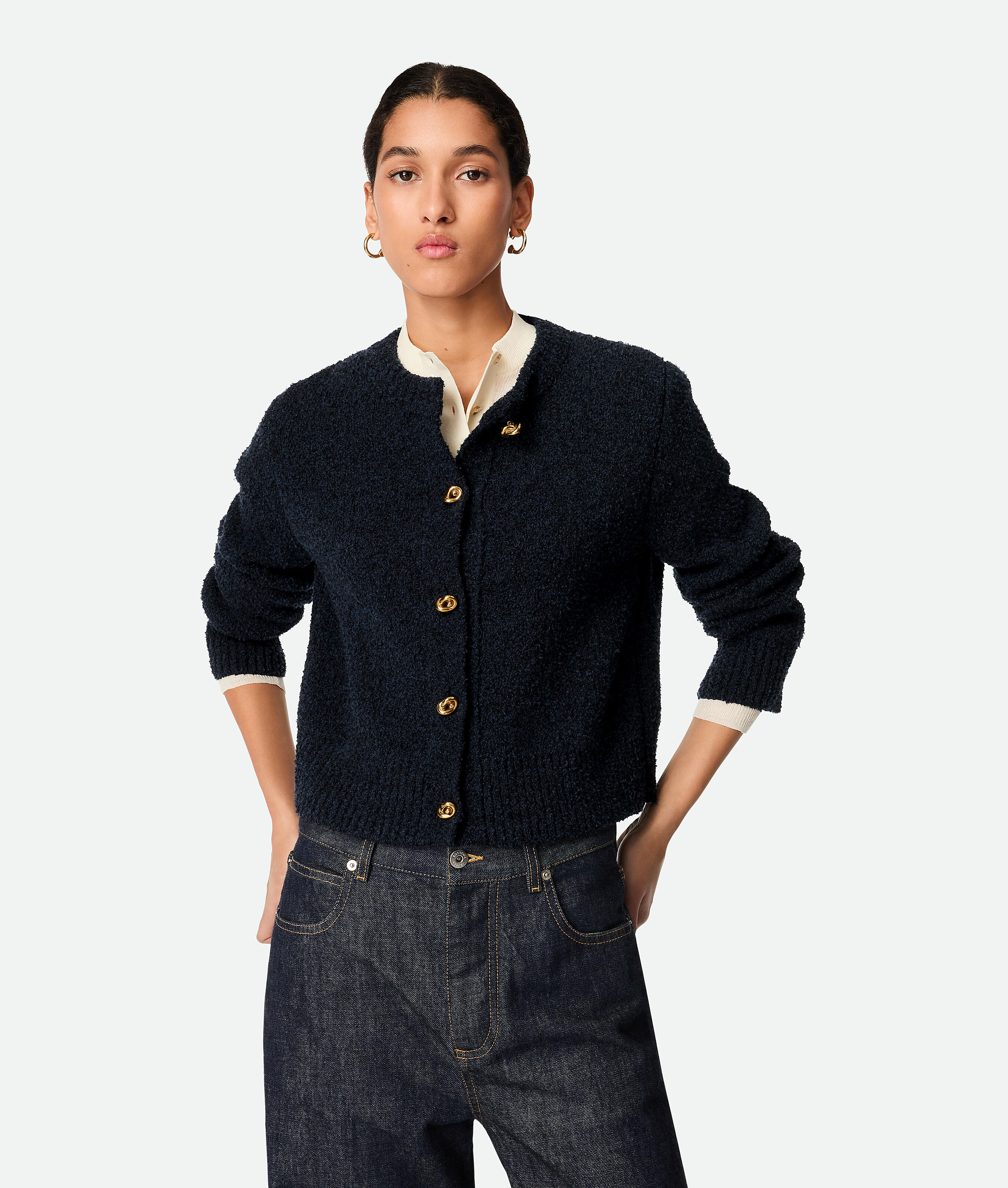 Cardigan en laine bouclée.