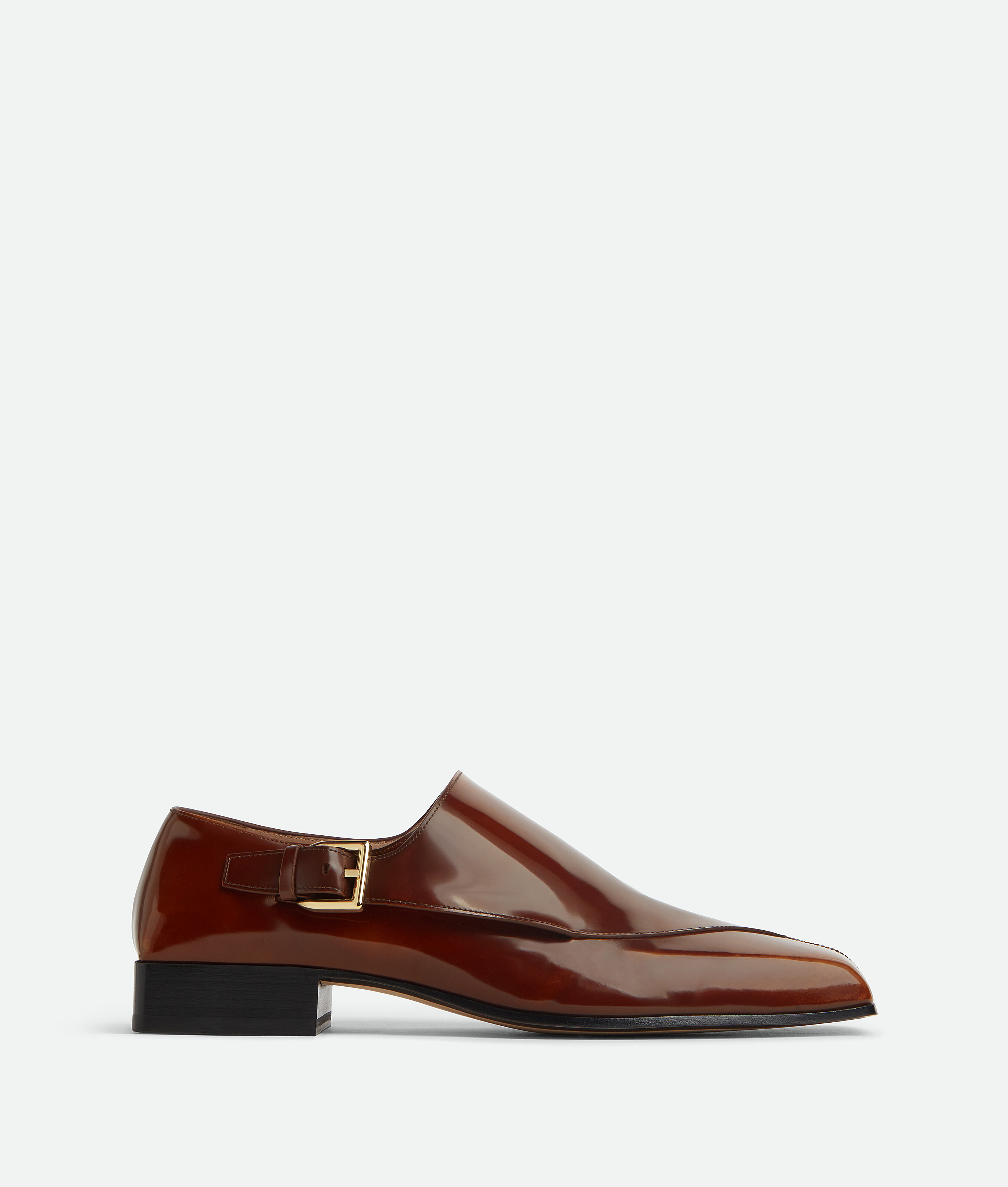 Chaussure à bride de moine et bout carré, en cuir brossé effet dégradé avec boucle sur le côté.