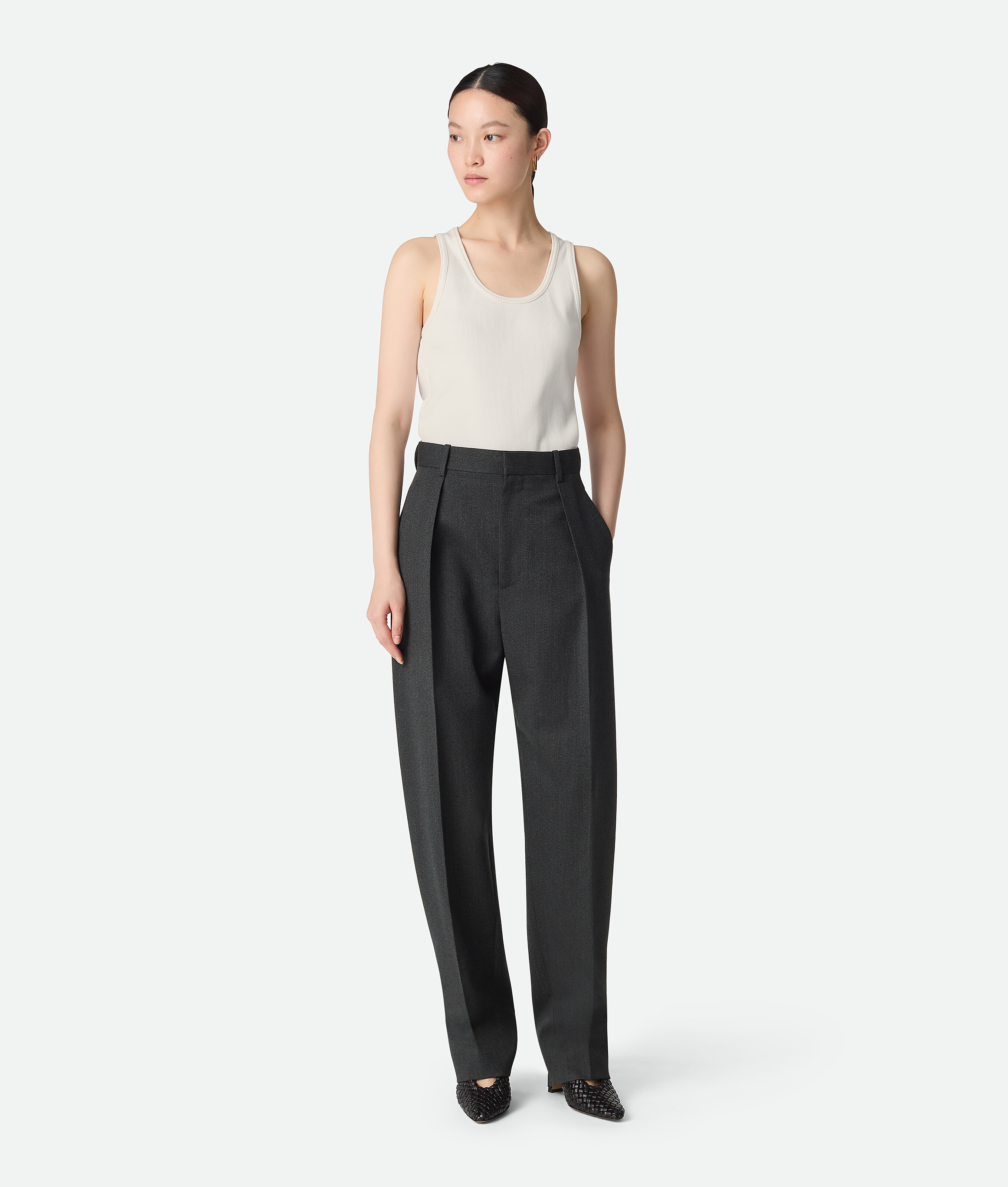 Pantalon fuselé plissé en sergé de laine moulinée compacte.