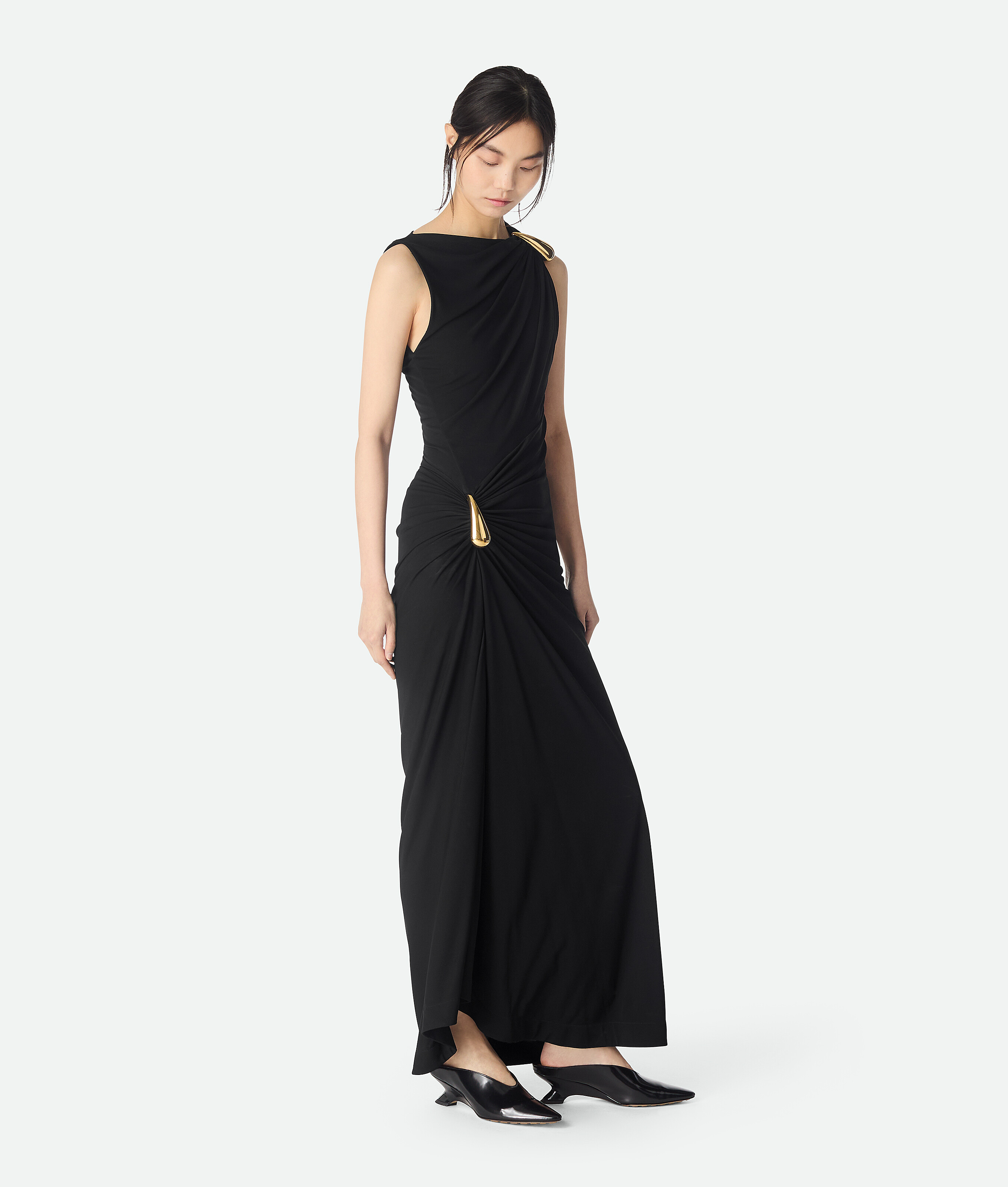 Robe en jersey mat de crêpe viscose avec détails signature drop en métal.