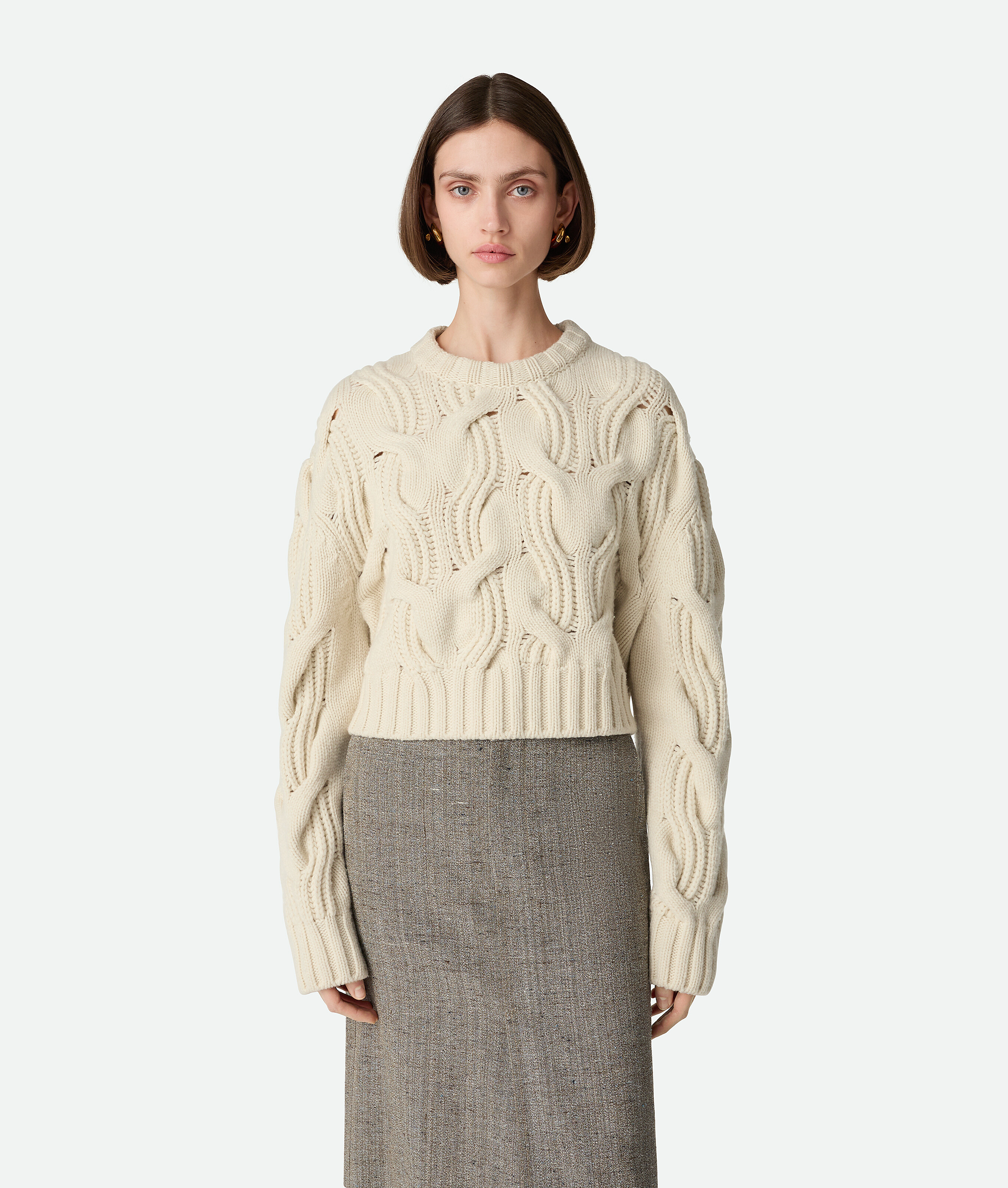 Pull cropped en laine torsadée à relief.