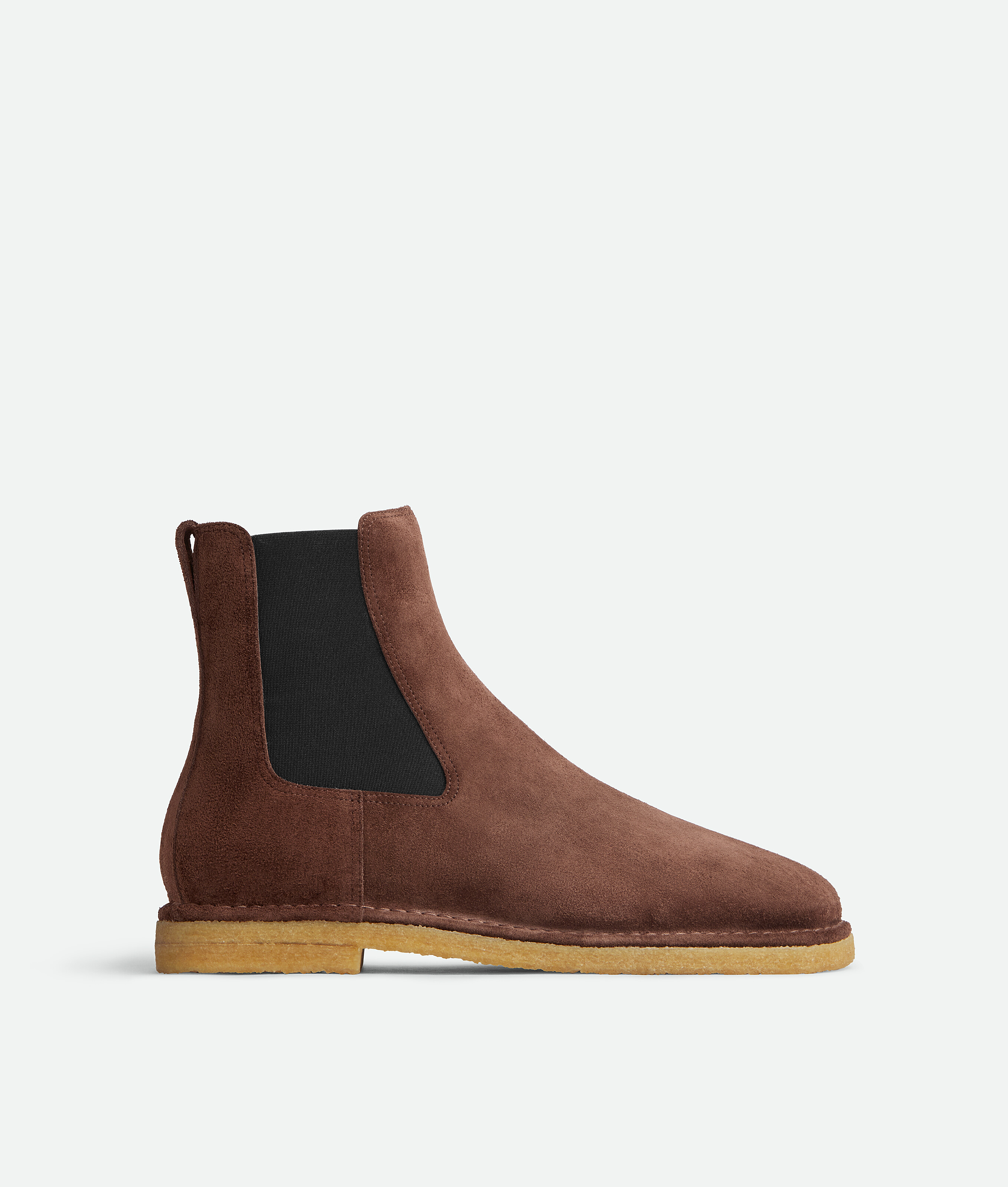 Bottine Chelsea en curi suède renforcé avec semelle extérieur en gomme effet crêpe.