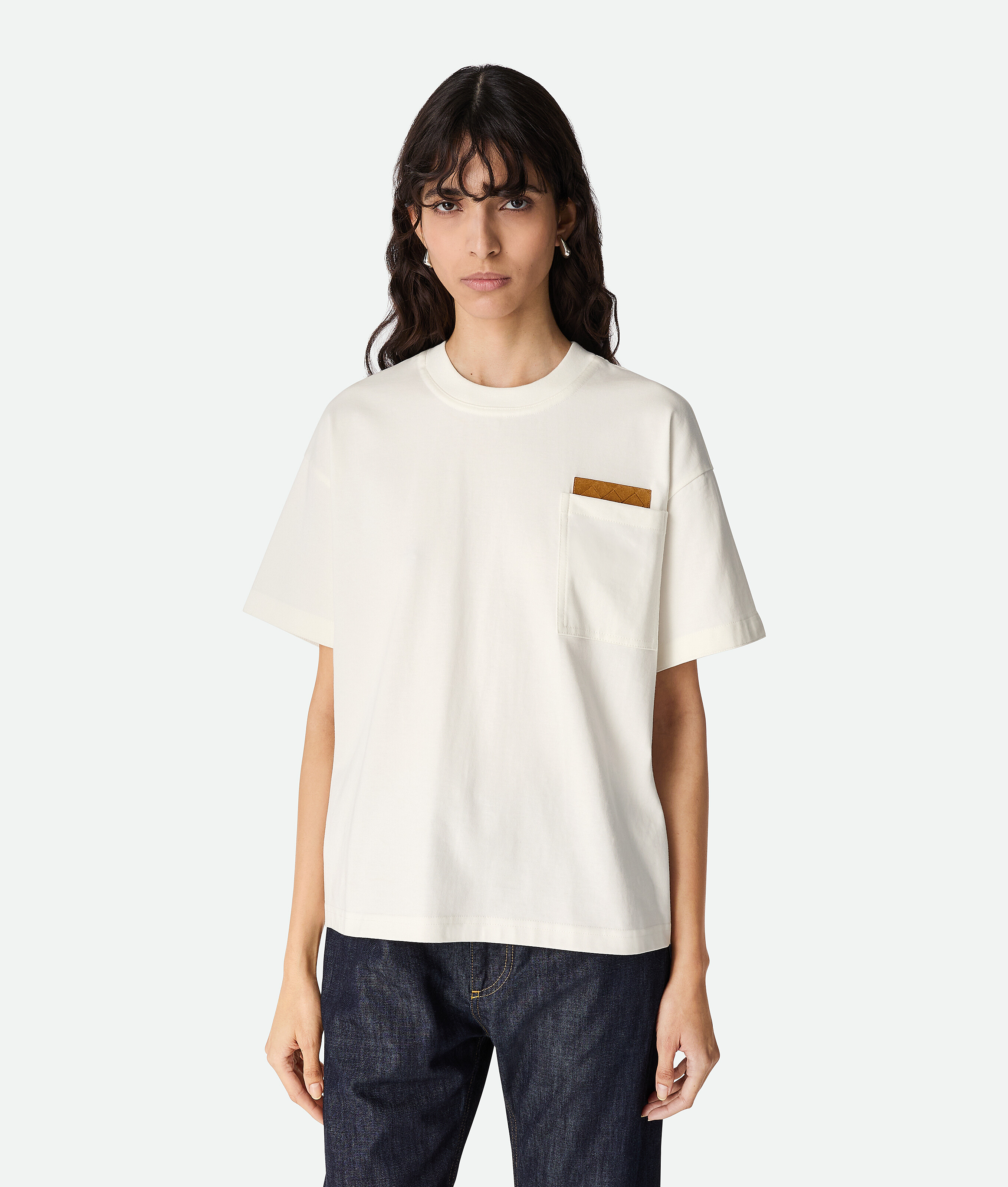 T-shirt en jersey de coton pima avec patch en cuir suède Intrecciato.