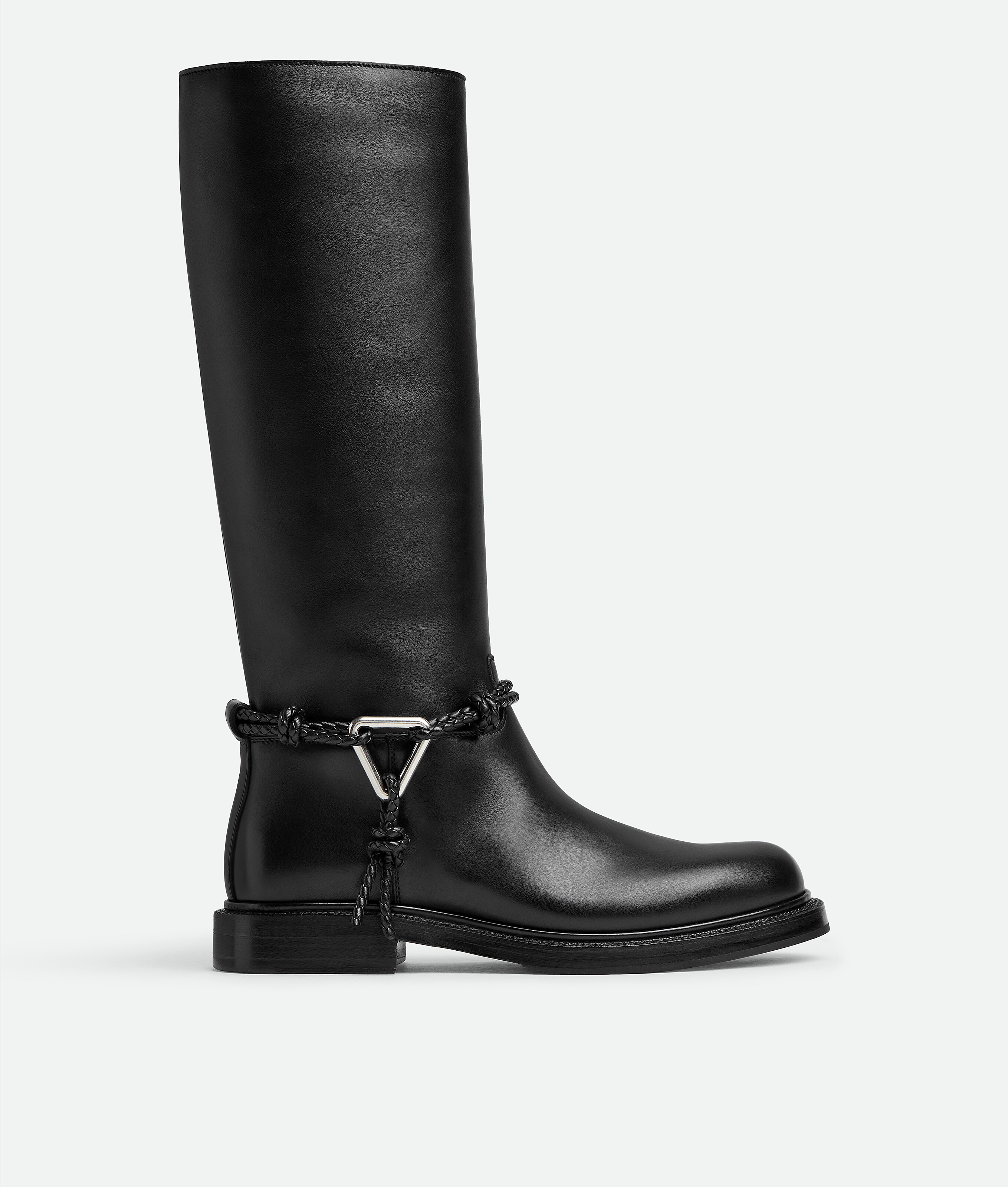 Botte en cuir de veau avec détail coaxial et triangle en métal signature.